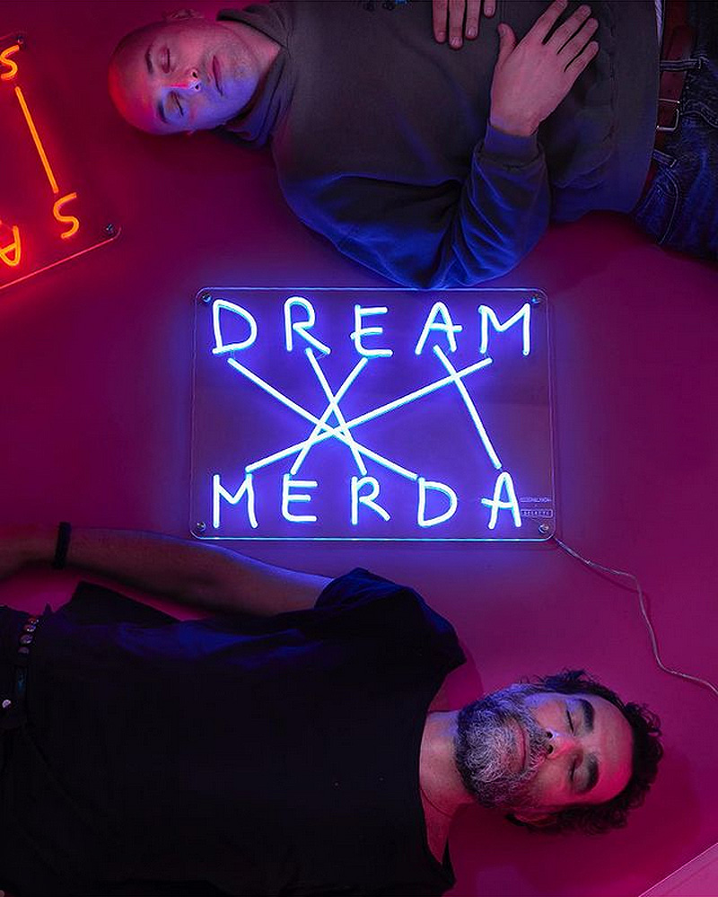 Nico Vascellari trae desde su estudio Codalunga en Vittorio Veneto estos nuevos diseños que se desarrollan a partir de la obra DREAM MERDA, un trabajo viral que finalmente se tradujo en camisetas de producción exclusiva. Stefano Seletti dice haberse fijado en este proyecto desde sus inicios en 2018, ambos se conocían desde hace tiempo y su colaboración era inminente.