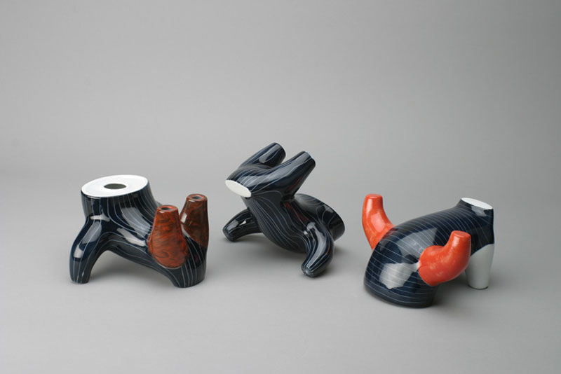 Arriba: Micos, piezas de los diseñadores El Último Grito realizadas por Sargadelos.