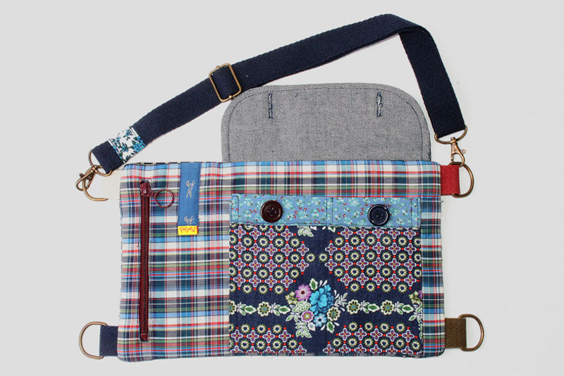 Arriba: Riñonera de Peseta modelo Tremenda Amazona. Bolso convertible en riñonera, con cinta ajustable y múltiples enganches que permiten llevarlo de diferentes modos. Telas procedentes de Madrid, Europa y Estados Unidos.