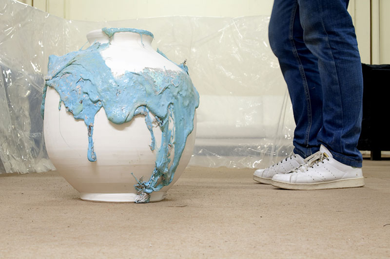 Arriba: Floreros Der/Die/Das de Apparatu, con churretes de plástico.