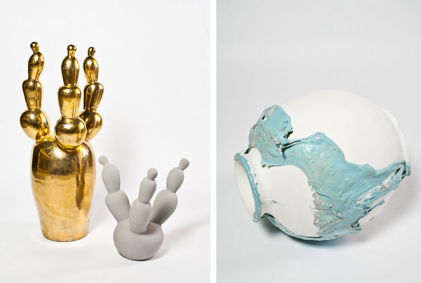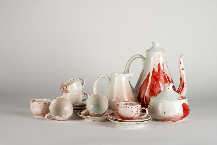 Arriba: Juego de café diseñado por el artista Antonio Murado en Sargadelos por encargo del New Museum de Nueva York.