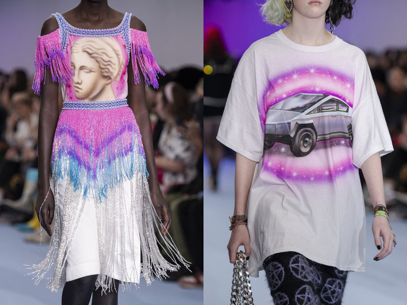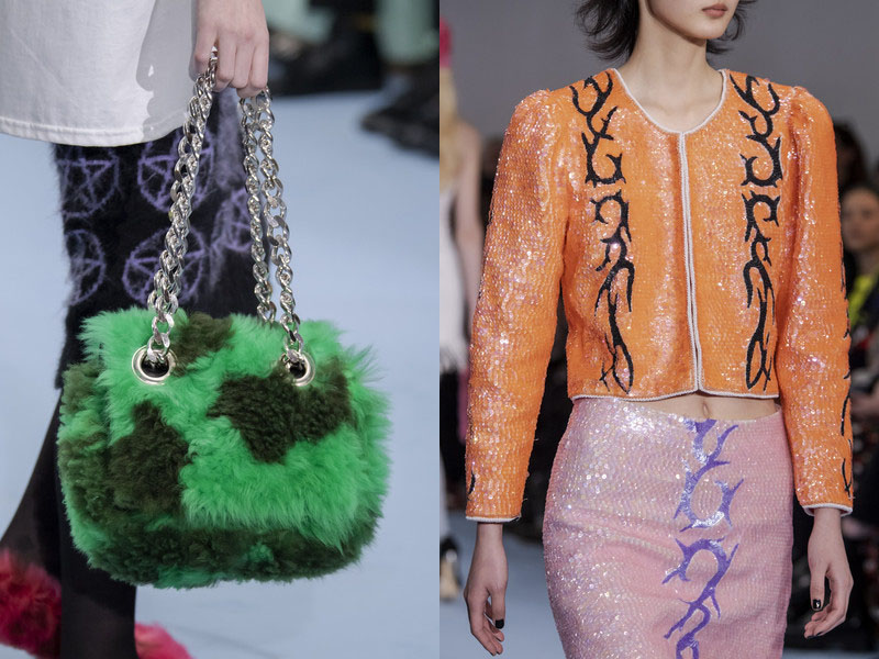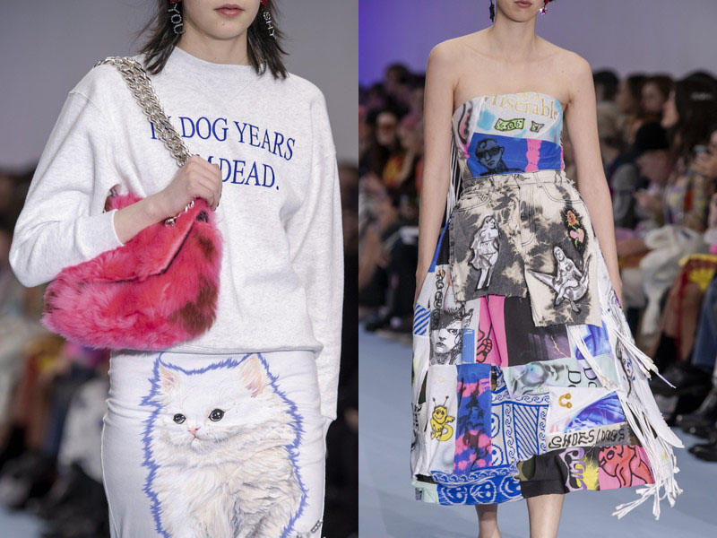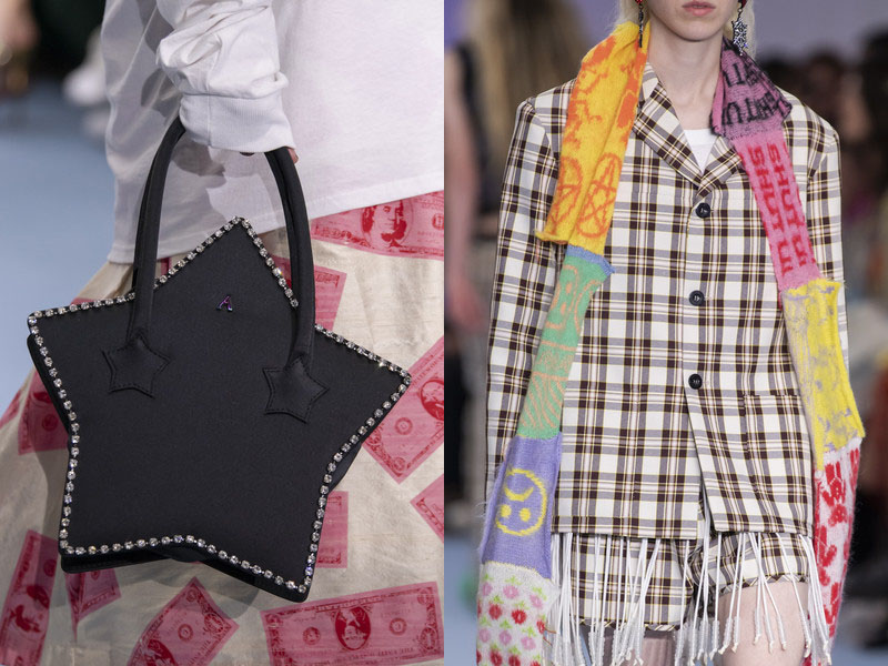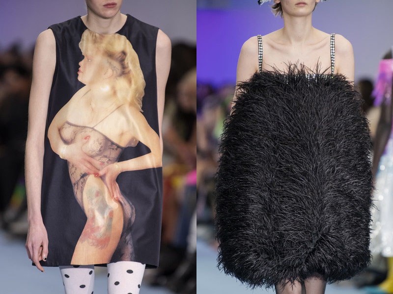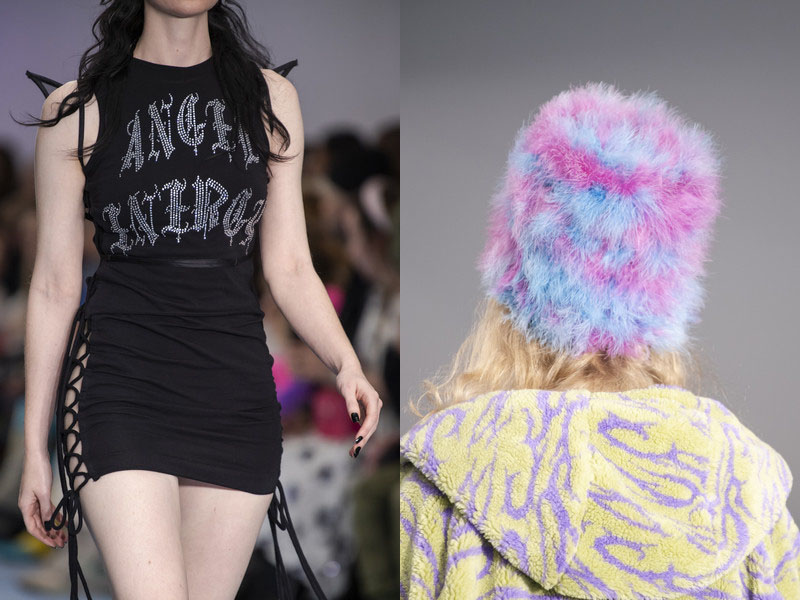 El arte urbano, algo tan típico de la escena londinense, también ha estado presente en prendas de aspecto lujoso como los trajes de noche o en su característico jersey fringed que hizo las delicias de Janis Joplin o Edie Sedgwick. Complementos como las llamativas sandalias forradas de pelo, los gorros de plumas y las gafas de sol rectangulares de clara inspiración noventera son los must de esta colección de Ashley Williams.