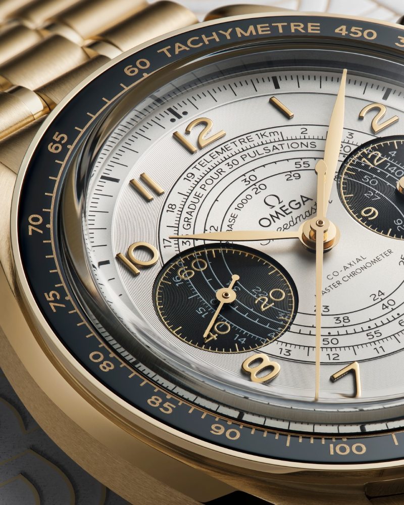 Omega es una casa con un estrechísimo pasado con los JJOO. Es más, son los cronometradores oficiales de todas las competiciones desde 1932… por lo que su nuevo Speedy no es solo una pieza de merch carísimo. Este reloj se usará de manera oficial este año. Y ahora que ya conocéis lo que es un reloj Chronoscope, hablemos de este nuevo Speedmaster. Omega presenta su nuevo modelo en 4 variantes: 2 de acero noble y 2 de oro Moonshine con opciones de brazalete o correa de piel.