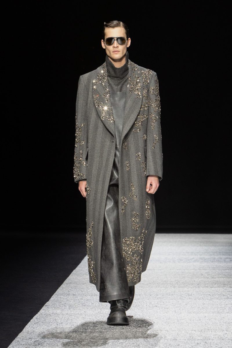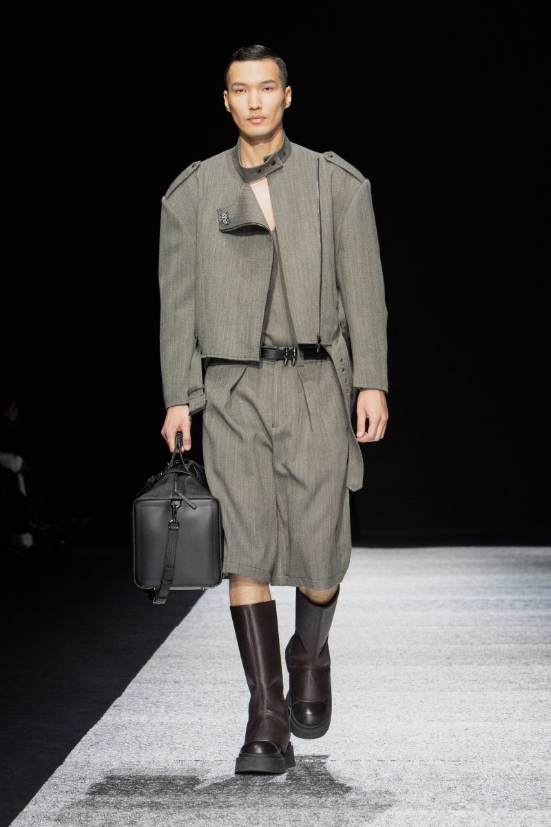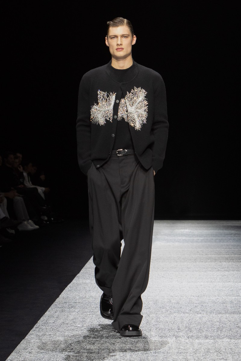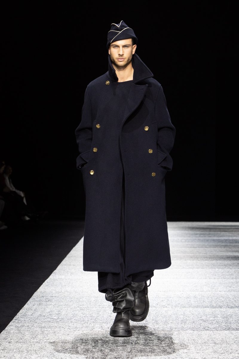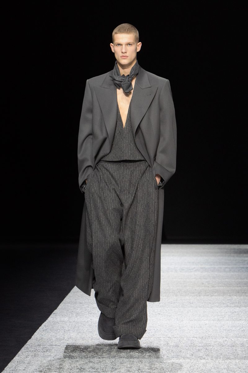 Giorgio Armani nos lleva en una travesía sobria y oscura a través del atlántico con su colección de menswear atemporal en Emporio Armani, fiel a los códigos de la casa.
