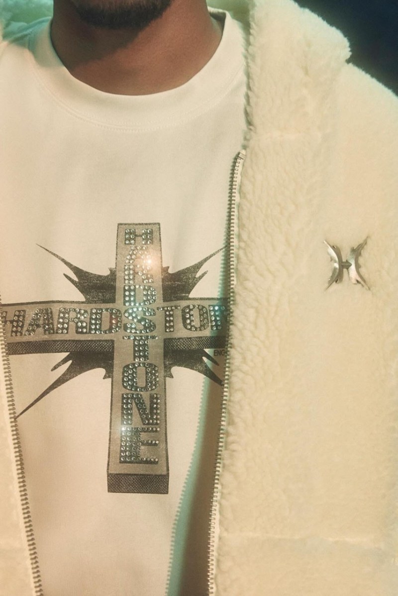 Ese paso es su propia marca de streetwear, Hardstone Hardware. Conceptualmente, la estética de este nuevo proyecto deriva directamente del universo que ha construido para Hardstone Psyco, su más reciente álbum. Aquí, encontramos unas claras referencias a los moteros de toda la vida (y, de manera obligatoria, guiños a la estética de marcas súper hypeadas como Chrome Hearts). Más allá, vemos ornamentaciones de pedrería brilli brilli que acentúan el talante dosmilero y Y2k de la marca. Y claro, la base de todo esto son los pilares indiscutibles de cualquier armario urbano.