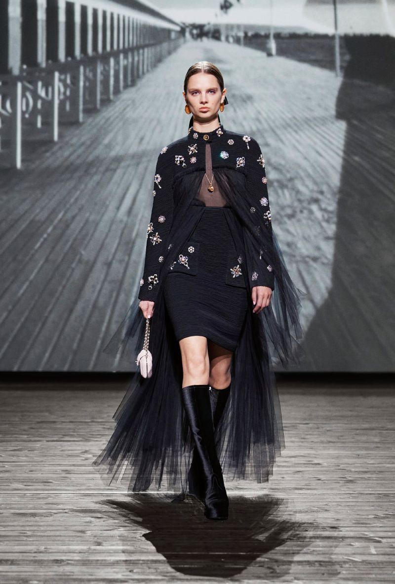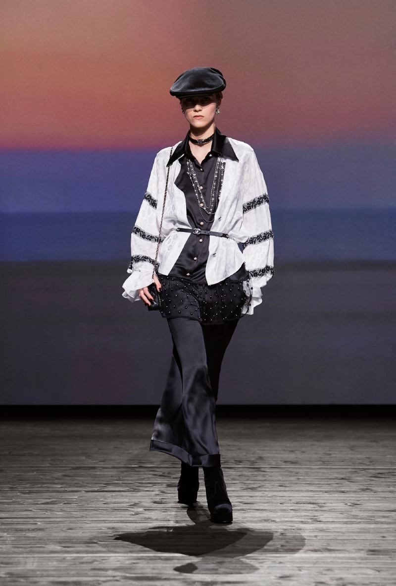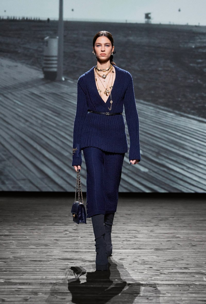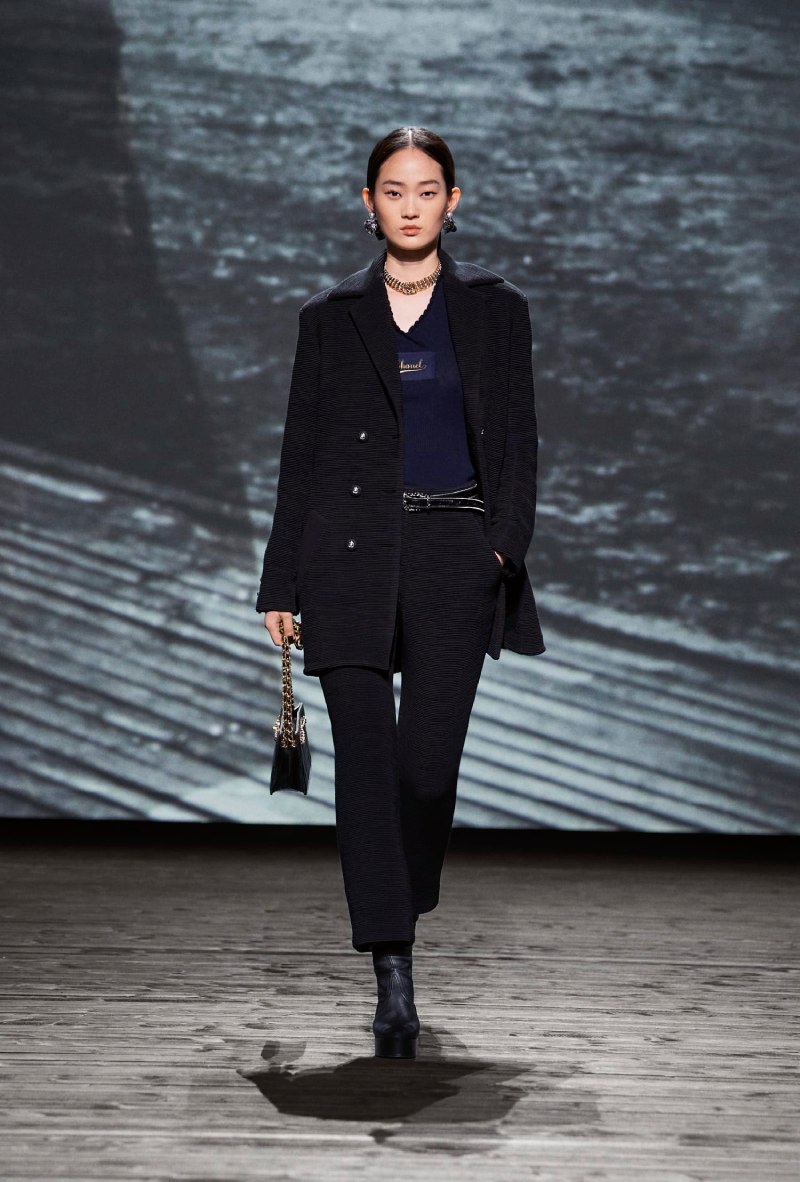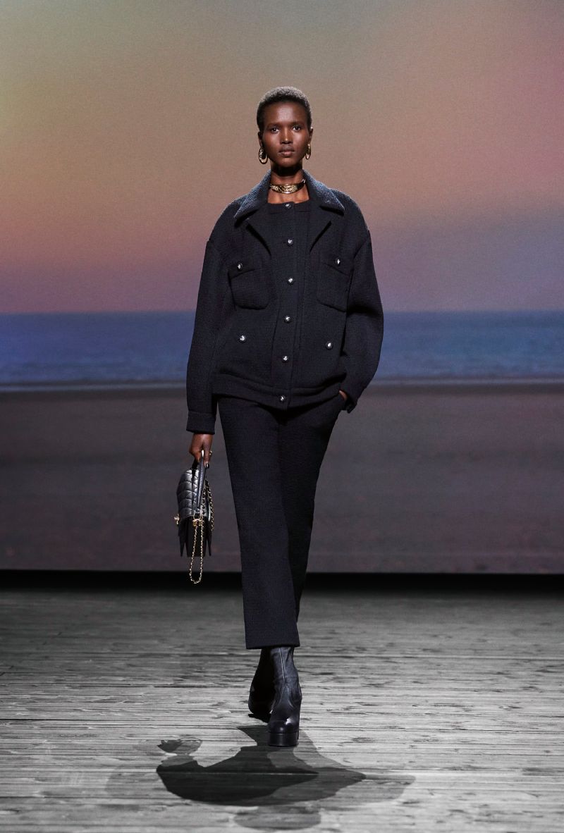 Atemporalmente andrógina, la colección saca su lado femenino directamente de los primeros armarios de su fundadora y de las primeras prendas que comercializaba en su tienda de Deauville. Y para el lado masculino, que todas las colecciones de la Maison tienen uno, Viard mira a las estancias de invierno junto al mar y su sutil elegancia.