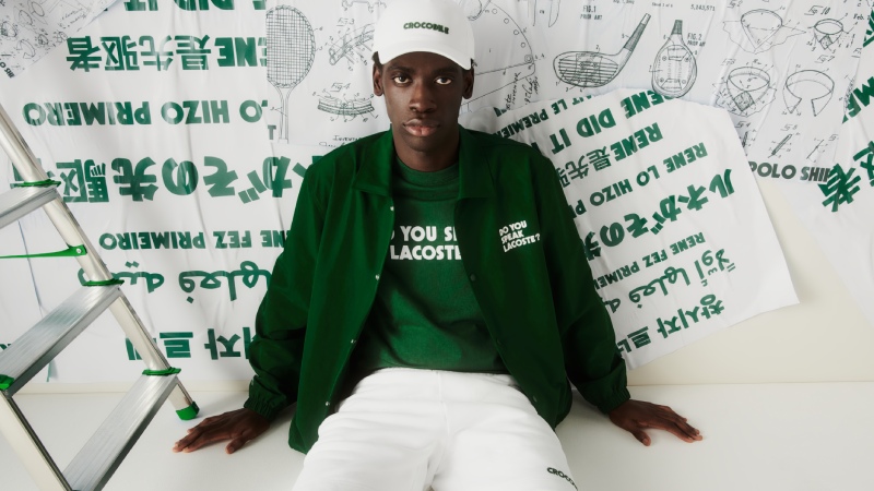 La colección que se presenta en la pop-up de Lacoste (aunque se puede comprar fuera de aquí) se comprende de básicos y esenciales casuales. Todas las prendas presentan gráficos de gran formato en sus pechos y dorsales con motivos alusivos al concepto. El diseño estrella lo podemos encontrar en el dorsal de la chaqueta track y su camiseta a juego, con la frase Do You Speak Lacoste? traducida en varios idiomas.