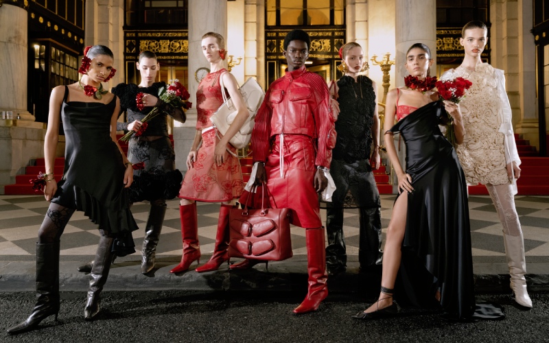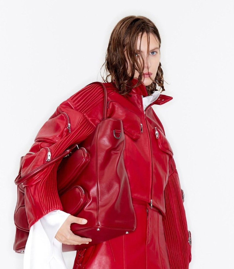 Bimba y Palomo, según leen las notas de la colección, es un relato contado en blanco, negro y rojo hilado por el rosa. El lenguaje genderless y transgresor de Palomo Spain se vuelca de lleno en una propuesta muy especial de prendas y accesorios de inspiración de high street. Construyendo sobre la pasión artesana del diseñador español, la colección conjunta de Bimba y Palomo hace un especial hincapié en la construcción y silueta de las prendas. Aquí, la apuesta principal se enfoca en el trabajo del cuero. Maxi-abrigos, faldas y chaquetas de estilo biker se coronan como estrellas de esta colección gracias a su juego de texturas sobre piel.