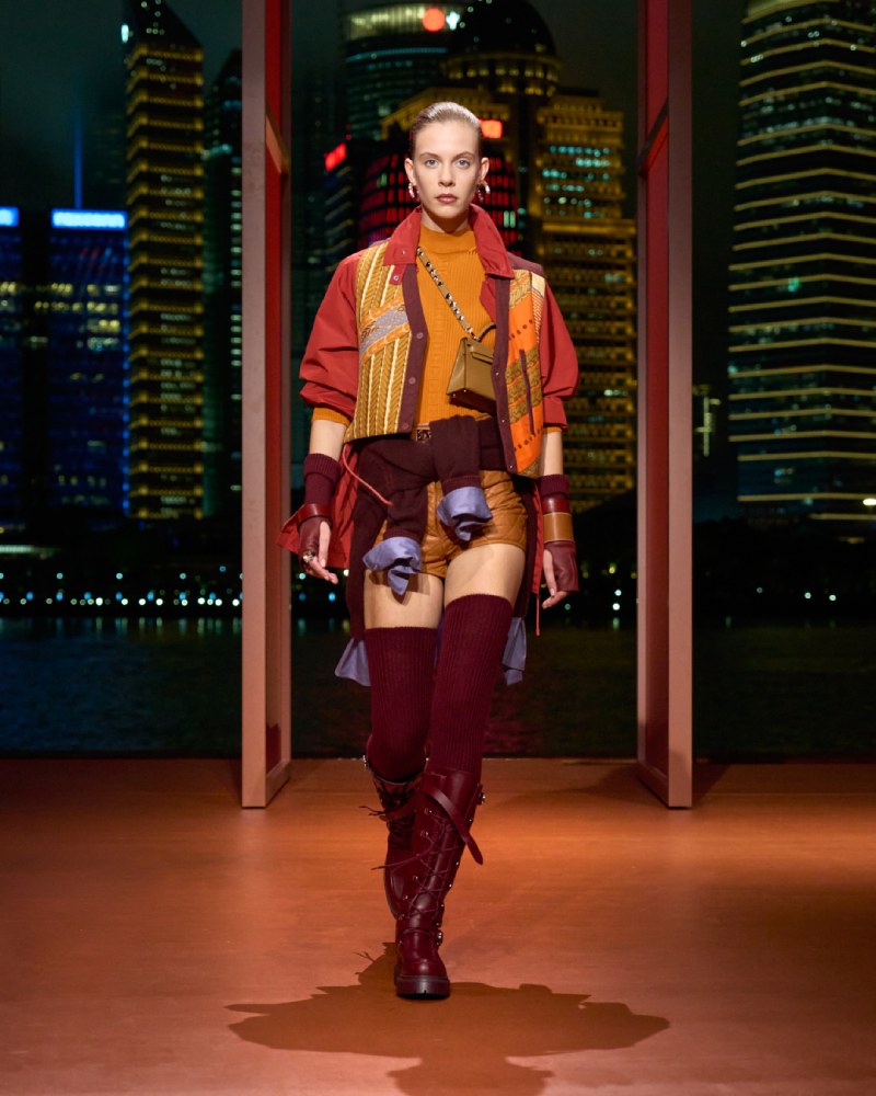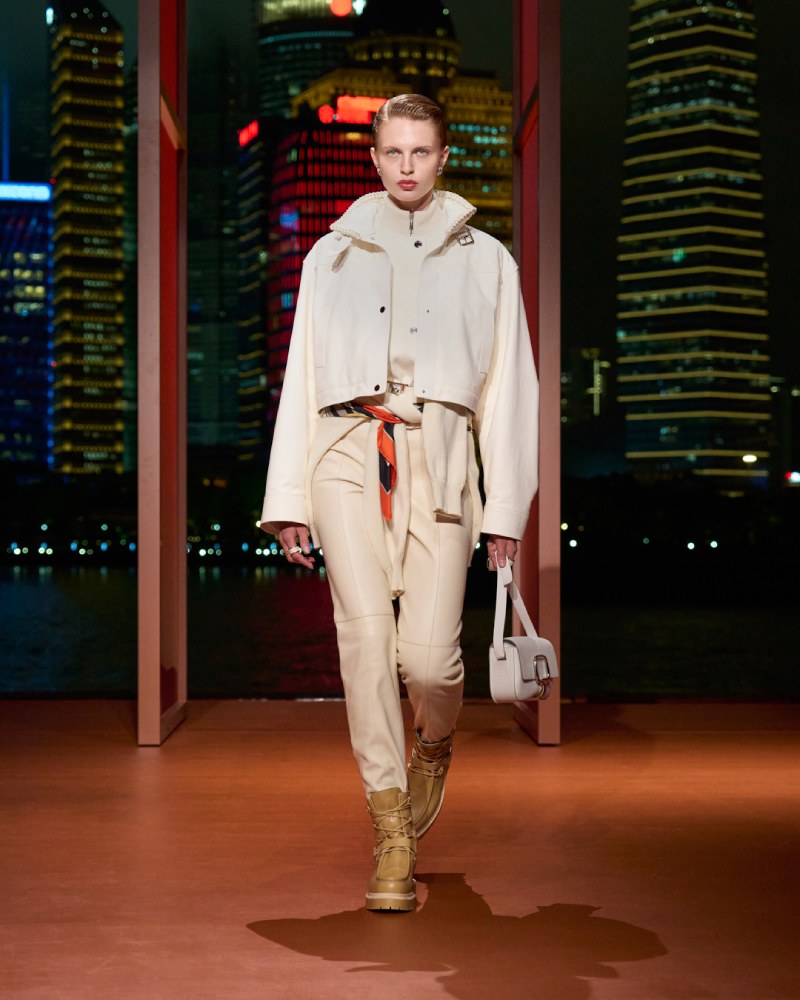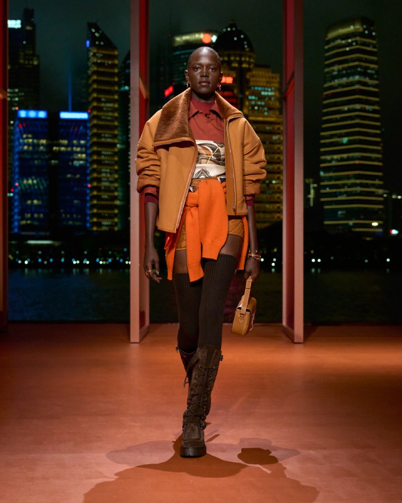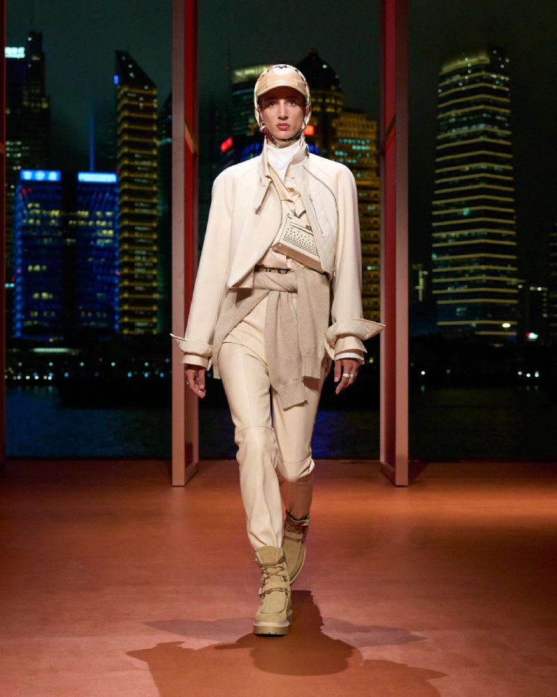 La nueva colección; bueno, el segundo capítulo de la nueva colección de la maison apuesta por un sendero utilitario y altamente funcional; sin rayar en lo techy y lo gorp core. Aquí, la base conceptual es el típico arquetipo de la mujer Hermès: elegante, sofisticada, segura. Pero a esto se le da una vuelta con un armario mucho más dinámico, modular y complejo. Esta nueva entrega viste a la mujer para la exploración en la ciudad, con siluetas, construcciones y materiales pensados para un lifestyle más movido y -muy- fluido.