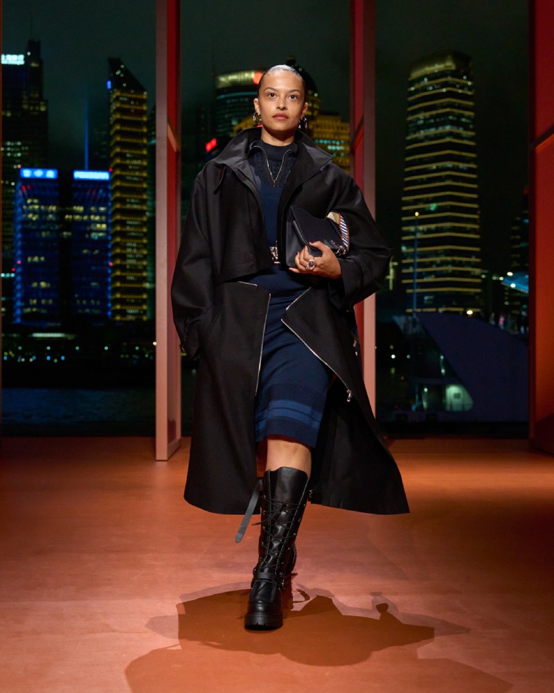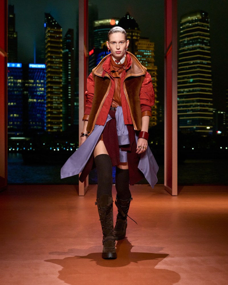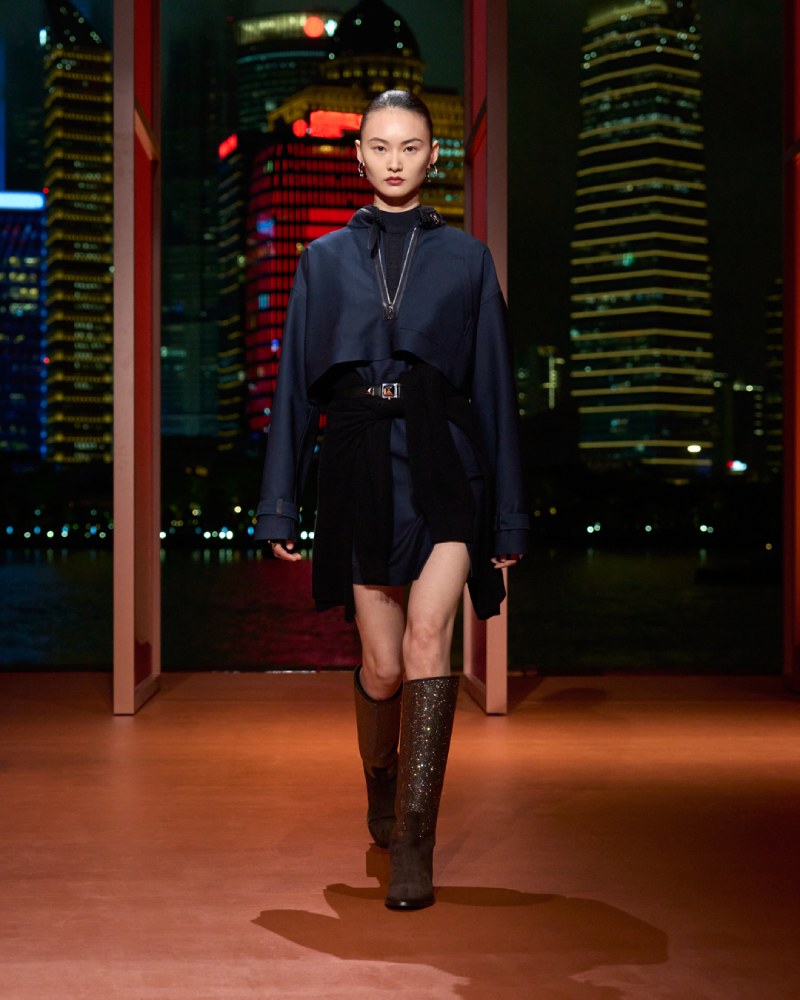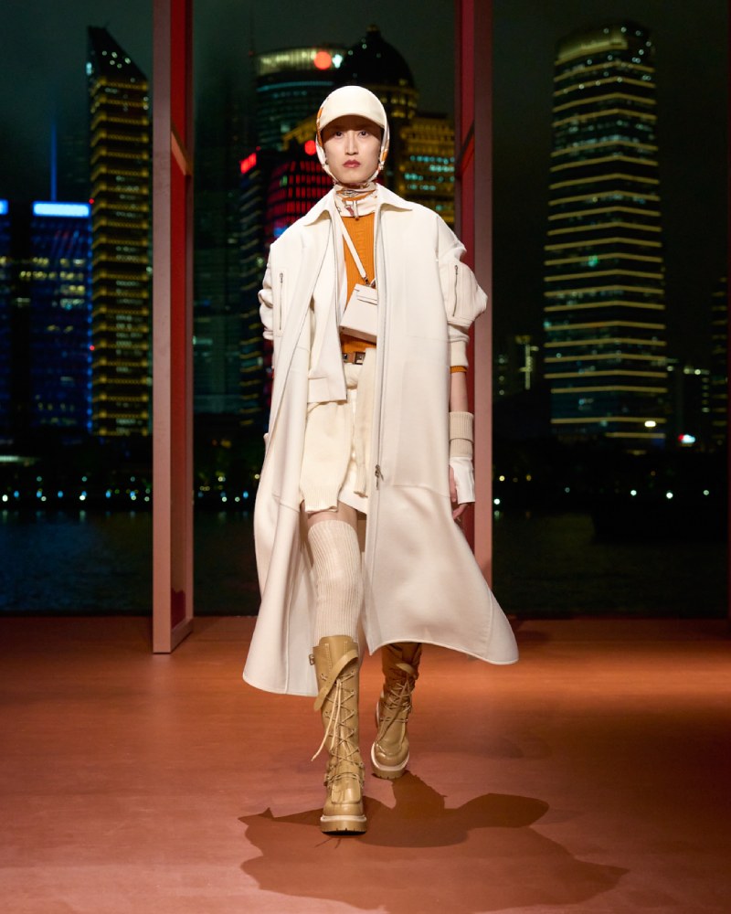 La nueva colección; bueno, el segundo capítulo de la nueva colección de la maison apuesta por un sendero utilitario y altamente funcional; sin rayar en lo techy y lo gorp core. Aquí, la base conceptual es el típico arquetipo de la mujer Hermès: elegante, sofisticada, segura. Pero a esto se le da una vuelta con un armario mucho más dinámico, modular y complejo. Esta nueva entrega viste a la mujer para la exploración en la ciudad, con siluetas, construcciones y materiales pensados para un lifestyle más movido y -muy- fluido.