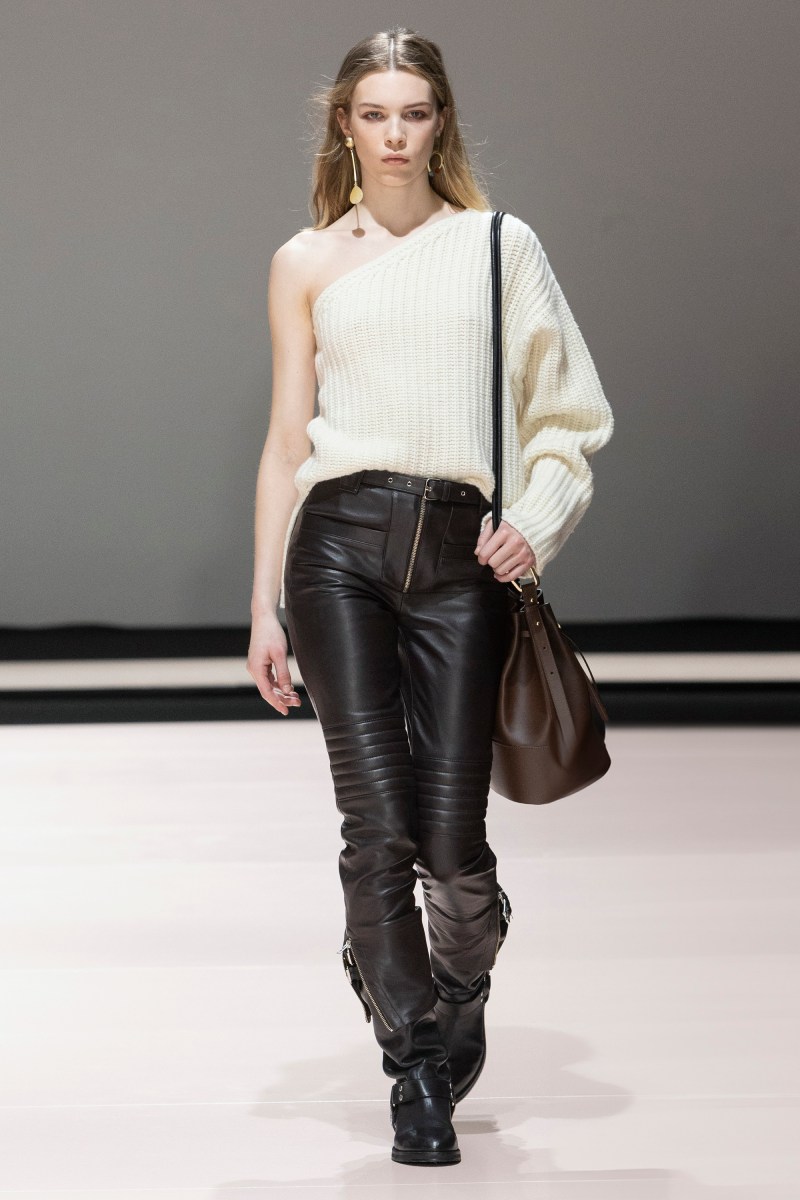 Twinset FW24 rinde homenaje a las características más esenciales de la firma, consiguiendo el equilibrio perfecto entre encajes ultrafemeninos y atrevidas prendas de piel. Jerséis de un solo hombro con pantalones de cuero, vestidos de encaje con botas moteras o vestidos de seda con chaquetas de cuero fueron algunos de los looks clave de esta propuesta.