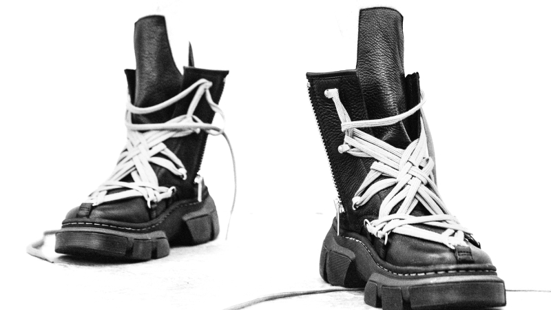 Para esta ocasión, Rick Owens vuelve a la base de todo: esta misma bota. Sin embargo, hay cosas muy nuevas y emocionantes. La silueta de siempre se ha reimaginado una vez más con su lenguaje característico y se le ha dado un plus con el uso de una nueva construcción inferior, de aspecto más táctico y utilitario. Esta elección no ha sido al azar: responde al amor del diseñador por los volúmenes arquitectónicos y dramáticos.