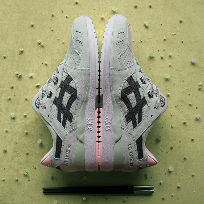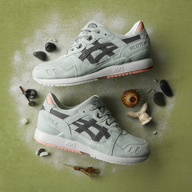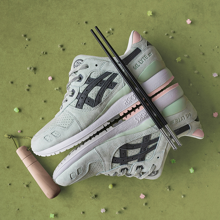 Ya nos han sorprendido antes con otras colaboraciones, pero esta vez Asics ha conseguido imitar el verde pastel del wasabi y lo ha mezclado con sus clásicas rayas que simulan las regiones de donde proviene este ingrediente. Además, ha incluido tonos en melocotón que nos recuerdan al jengibre en escabeche rosa, también típico en la cocina japonesa para cambiar de sabor entre los alimentos.