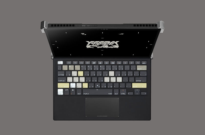 Por otro lado, el chasis del Flow Z13, que se ha diseñado para convertirse en su propio estuche de transporte, se ha sometido a un intenso proceso de mecanizado que se muestra a la vez con una presentación refinada y con marcas evidentes del proceso de CNC. Al echar un vistazo más de cerca, el dispositivo creado por Acronym y Asus Republic of Gamers revela detalles sorprendentes, como gráficos grabados con láser y tipografías e iconografía personalizadas.
