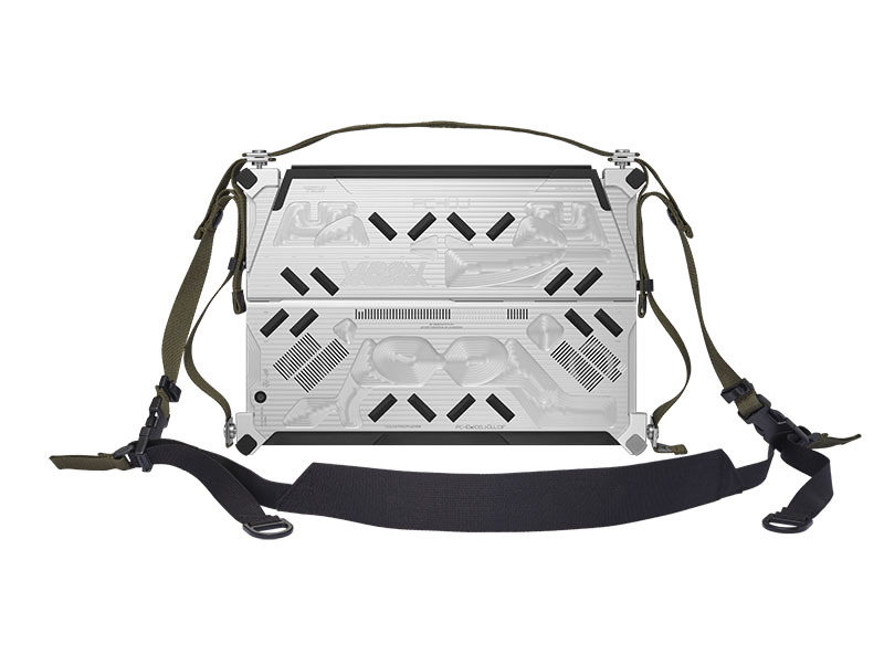 Junto a esto, el sistema de transporte integrado utiliza una correa versátil que permite que el producto de Asus Republic of Gamers y Acronym se convierta en su propio sistema de transporte para poder ser utilizado de varios modos.