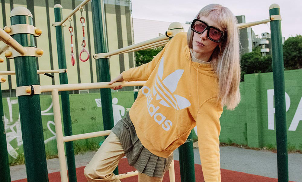 Sudadera ADIDAS ORIGINALS + Camiseta blanca AMERICAN VINTAGE + Minifalda ZARA + Pantalón DESIGNERS SOCIETY + Zapatillas ADIDAS ORIGINALS + Gafas y pendientes CLEOPATRAS BLING