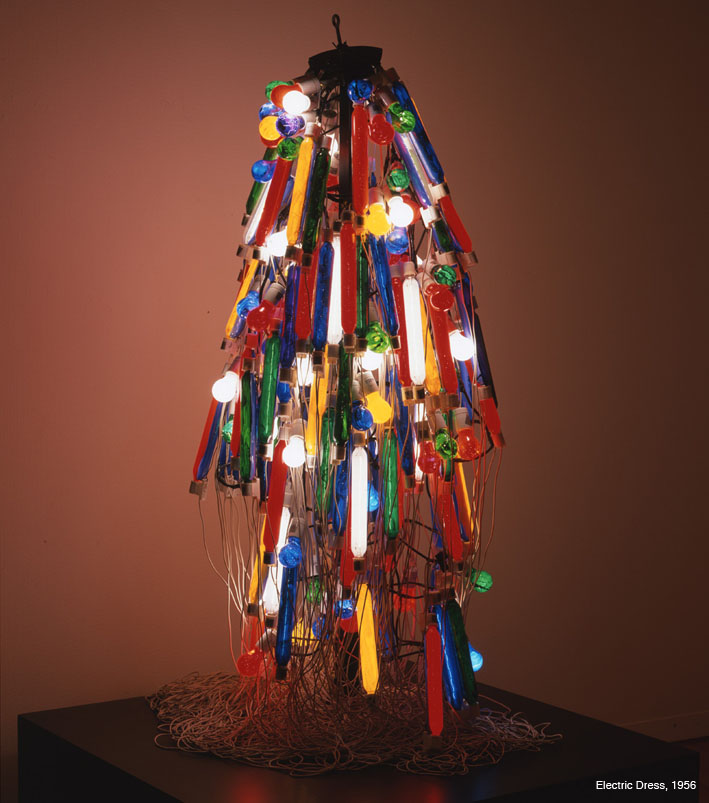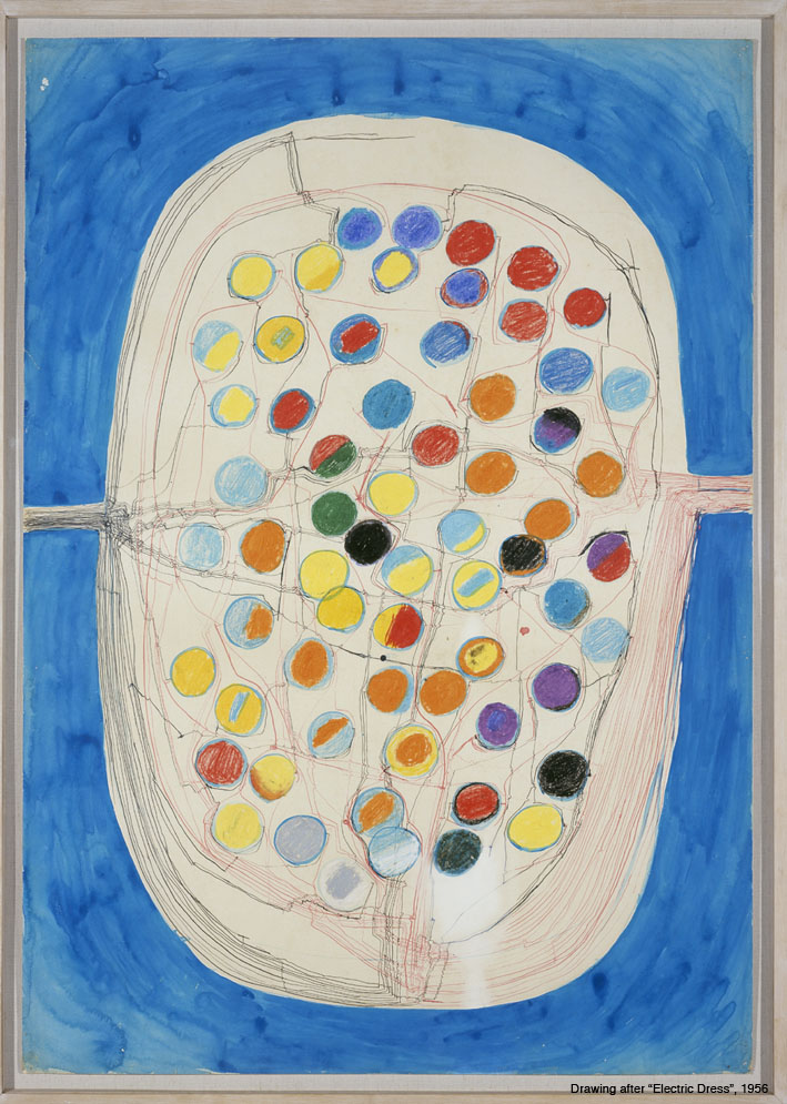 Esta exposición hace un completo recorrido por la obra de esta reconocida artista japonesa, desde sus trabajos mas tempranos (collages sobre papel de su serie Calendar), hasta sus últimos trabajos (pinturas abstractas y coloristas como “87H”), pasando por su etapa donde aunó esfuerzos con otros artistas japoneses para formar el colectivo Gutai, de esta época se pueden ver las obras “Gutai Study” 1957 y “Gutai Painting de 1961/63. La exposición también recoge dos de sus obras mas reconocidas “Bell” de 1955 y la escultura “Electric Dress” de 1956.