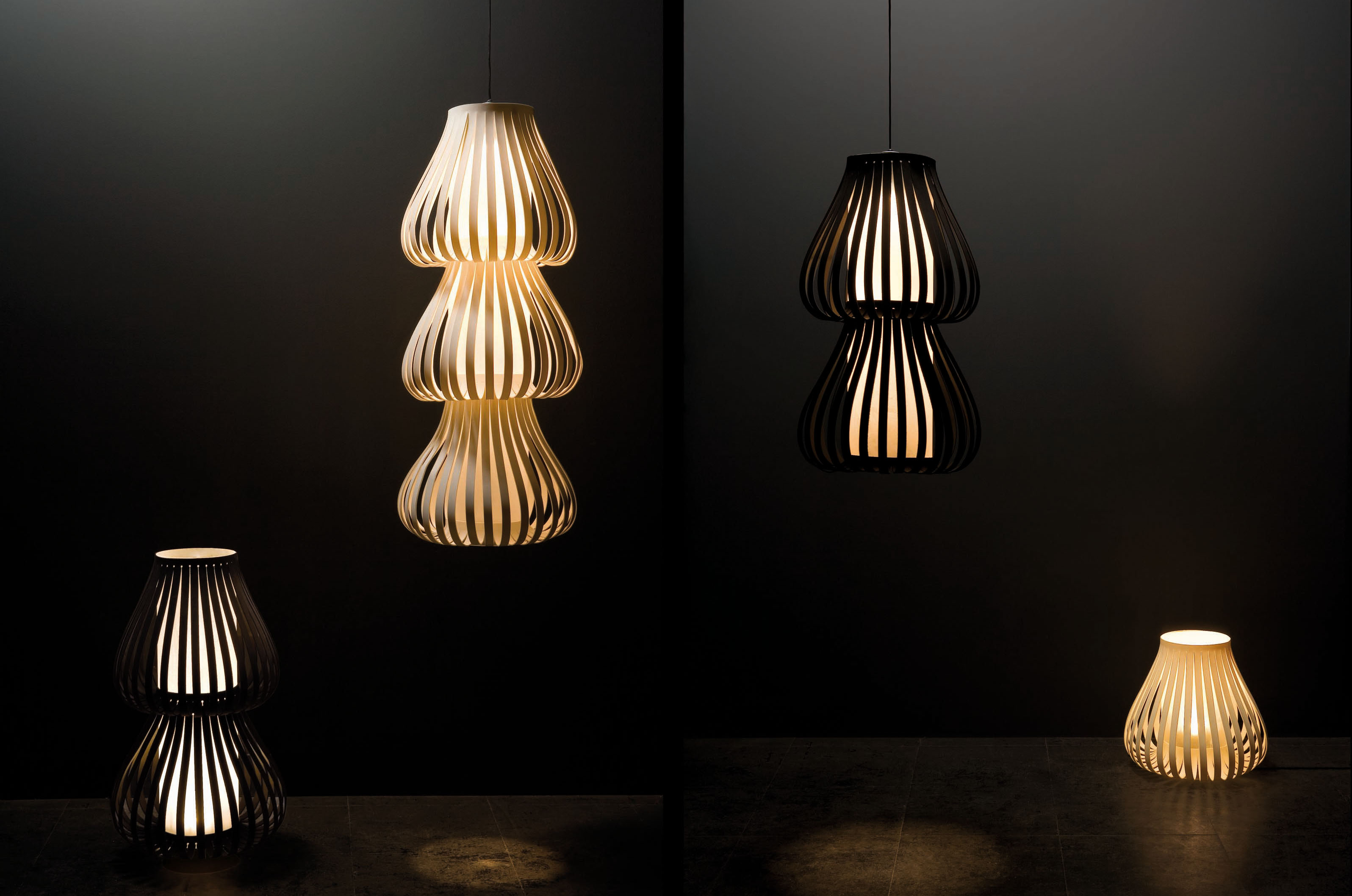 Permite crear tres diferentes alturas apilando los módulos, y por lo tanto puede ser utilizada como luminaria de pie, de suspensión o cambiar a sobremesa si uno lo decide. Bailaora es una luminaria compuesta por un difusor apilable de metacrilato satinado revestido de espuma EVA. Este tipo de material tiene la particularidad de ser un elemento innovador y ultraligero con acabado suave, sedoso y muy duradero. Es lavable y se puede reciclar. Disponible en blanco o negro.. El diseñador es Enoc Armengol, nacido en Barcelona, es uno de los diseñadores emergentes en este momento. En sus diseños, Enoc reinterpreta los objetos cotidianos de acuerdo con sus necesidades. Bailaora es el primer modelo de Enoc para Metalarte.