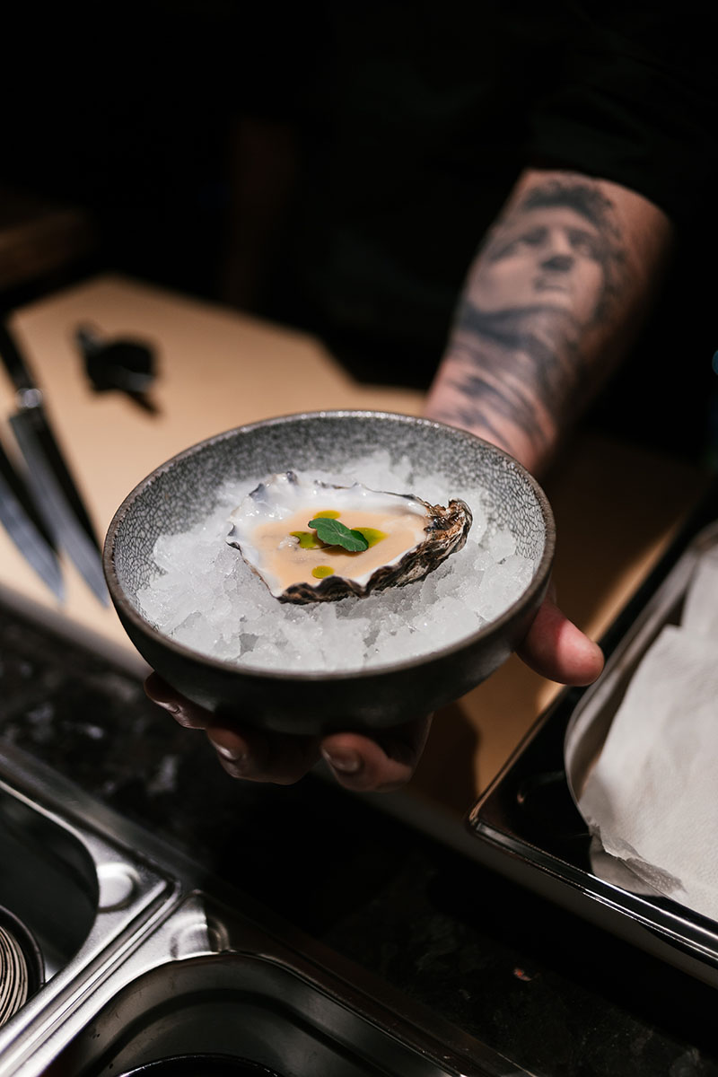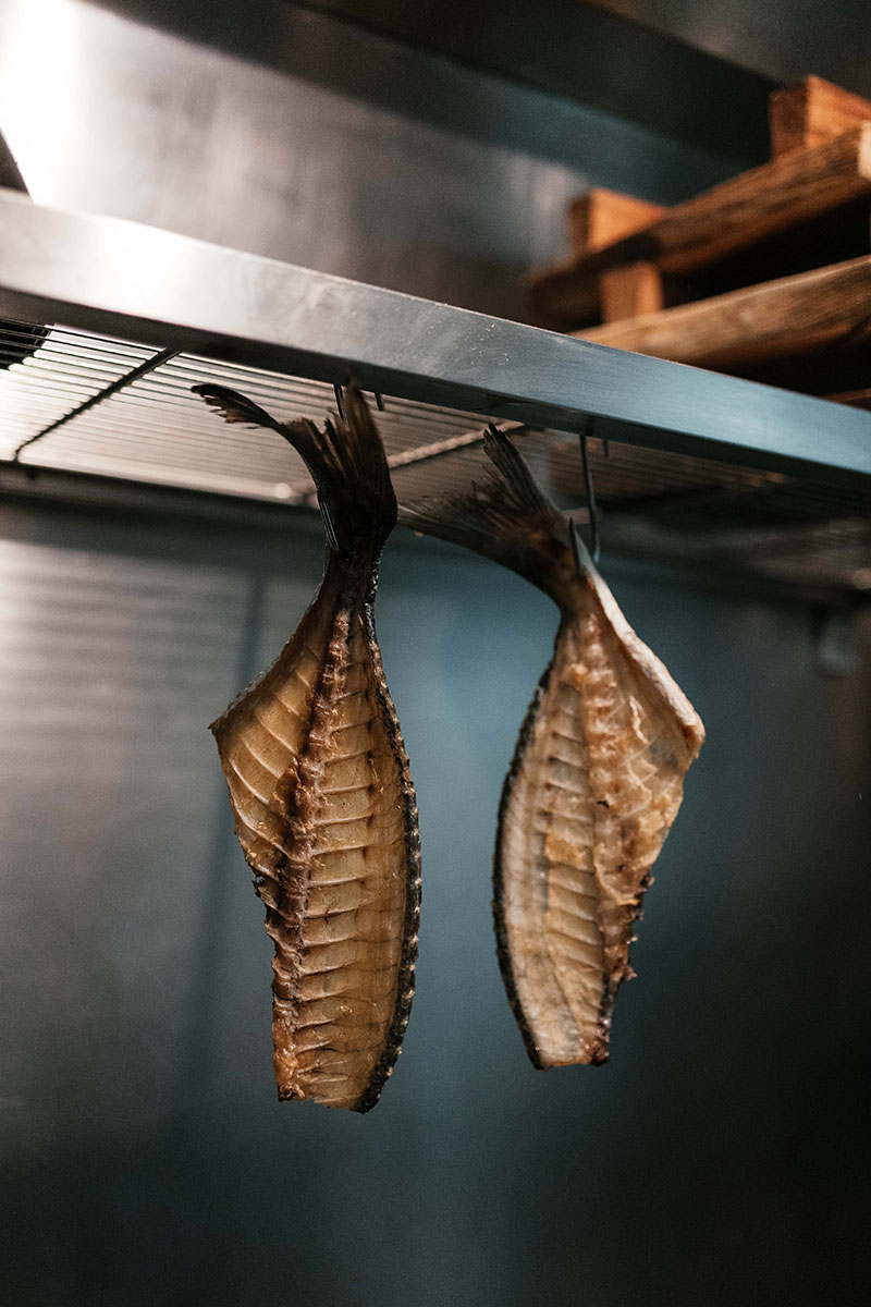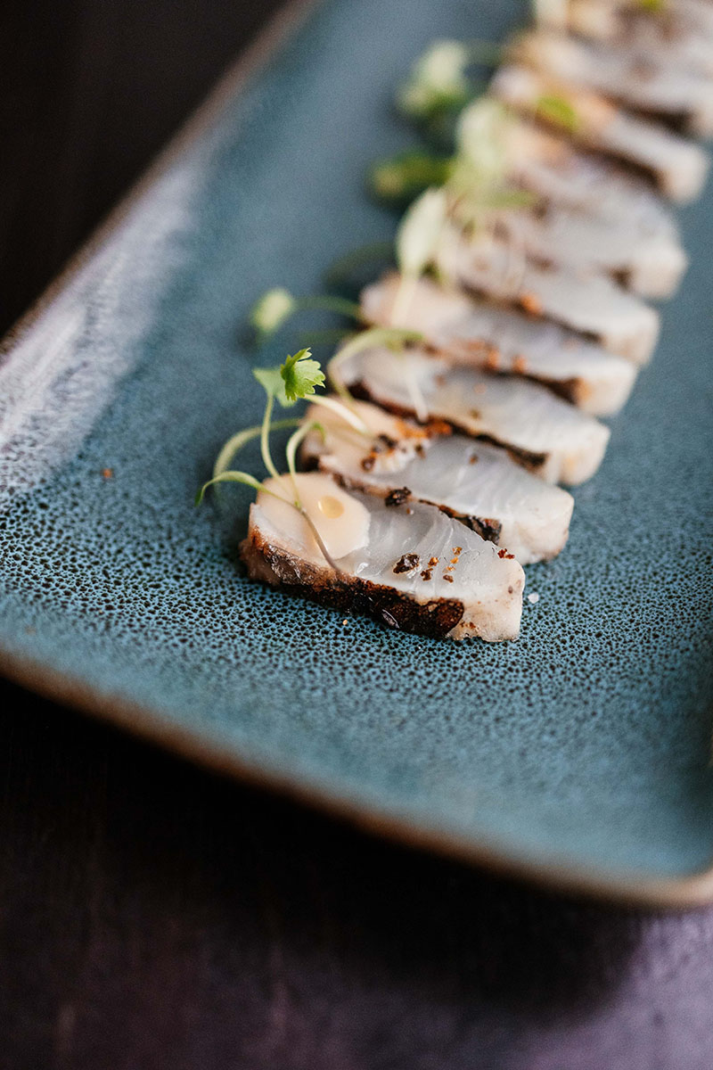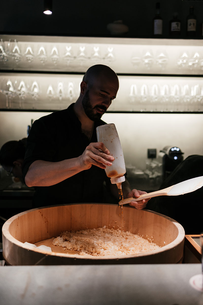 Si eres un buen foodie, ya sabrás que la barra es el mejor lugar para sumergirte en una experiencia gatro, si además es en un japonés, mucho más. Sergio Monterde y otro cocinero más están en barra trabajando y explicando, en la cocina otro compañero maneja dos tipos de brasas: un Josper y un kamado. En Bākkō, según nos cuentan, se hace todo: desde las salsas, los vinagres, curar los pescados, hasta los mochis, y esto claro está se nota en el sabor.
