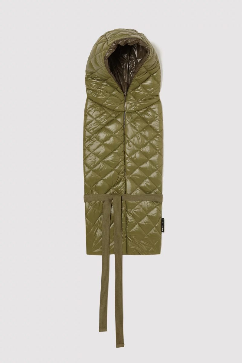 ¿Y las capuchas? Otra tendencia que te dejará sin palabras. Si has pensado que habías visto todo después de la balaclava, atención a esta prenda. Seguramente, habrás visto todo tipo de capuchas en tejido satén sobre vestidos. Ahora llega la que llevarás cada día en invierno. ¿Cuál es nuestra favorita? Claramente, la que tiene OOF WEAR en tono verde y acolchada. Por cierto, Coperni, Vivienne Westwood y Off-White, marcas que han sido visionarios y ya habían incorporado este tipo de capuchas en sus colecciones.