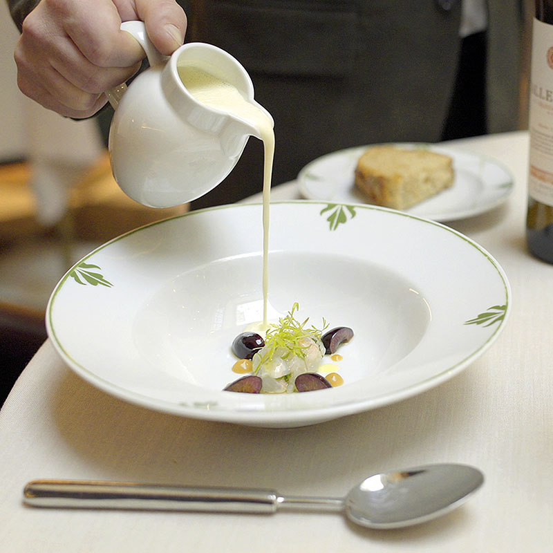Entrar a Balausta es como adentrarse en una novela histórica. El restaurante está situado en el patio del Palacio Solecio, un espacio que combina el encanto del pasado con la elegancia moderna. Rodeado de columnas, vegetación exuberante y una atmósfera de tranquilidad. Un patio andaluz que ofrece un refugio perfecto del bullicio urbano. El chef Sergio Solano junto con José Carlos García, como asesor gastronómico, nos ofrecen una variada carta que rinde homenaje a los ingredientes locales y las recetas tradicionales, elevándolas con técnicas contemporáneas y una presentación impecable.
