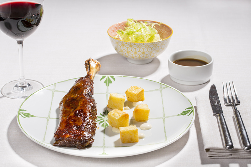 Paletilla de chivo lechal de raza malagueña pura con salsa pastoril y patatitas rustidas al ajillo
