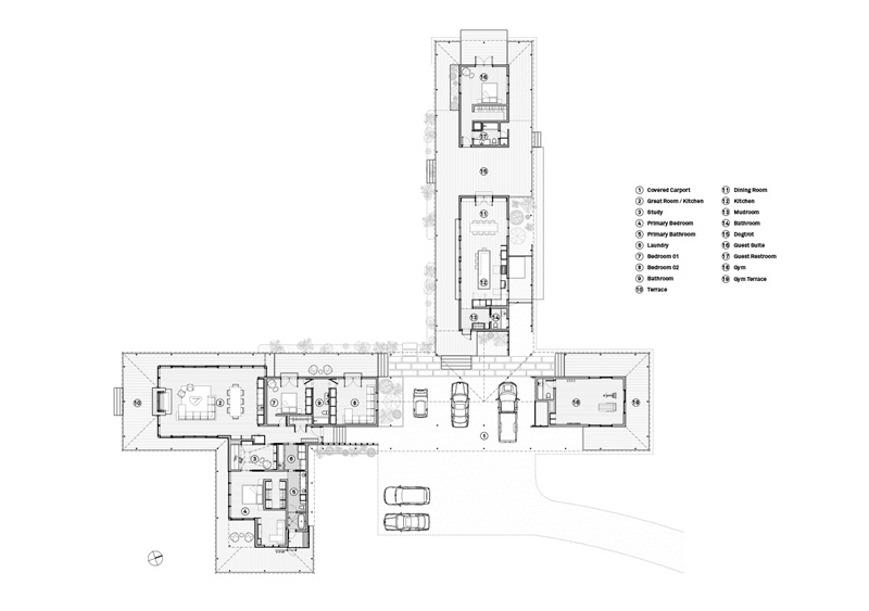 Baldridge Architects da unidad al proyecto a través de la original cubierta que da cobijo a los volúmenes