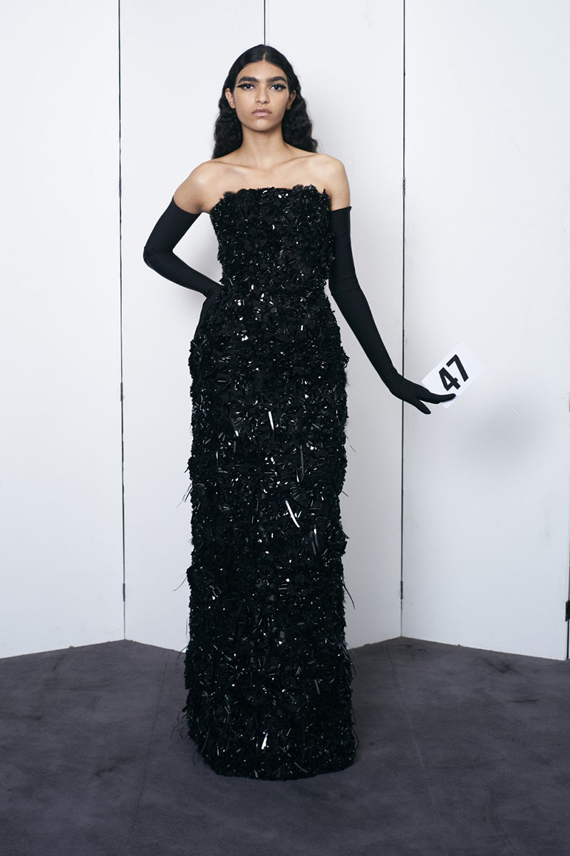 Algunos detalles más clásicos en la Alta Costura de Balenciaga se renuevan, como las sedas endurecidas con hilo metálico o los materiales provenientes originalmente de animales que se sintetizan a partir de elementos que dan una sensación casi idéntica. Algunas de las piezas que más llaman la atención son por ejemplo el vestido brillante hecho con una malla de Swarovski, o el vestido de encaje trenzado y tul icónico de Balenciaga…