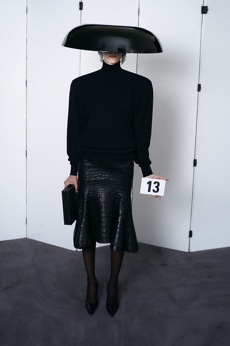 Otras prendas se inspiraban directamente en lo que el propio diseñador solía vestir, como la sastrería en fresco, el mohair, la cachemira o la lana barathea; todas estas prendas confeccionadas en colaboración con la sastrería Huntsman, su sastre favorito. Otras de las complejas piezas que se presentan en la colección como las blusas y las chaquetas, están hechas a partir de una compleja corsetería de base reforzada, mientras que los trajes de noche se adornan a mano y se vuelven voluminosos a partir de costuras estratégicas mínimas o acolchados moldeados a mano.