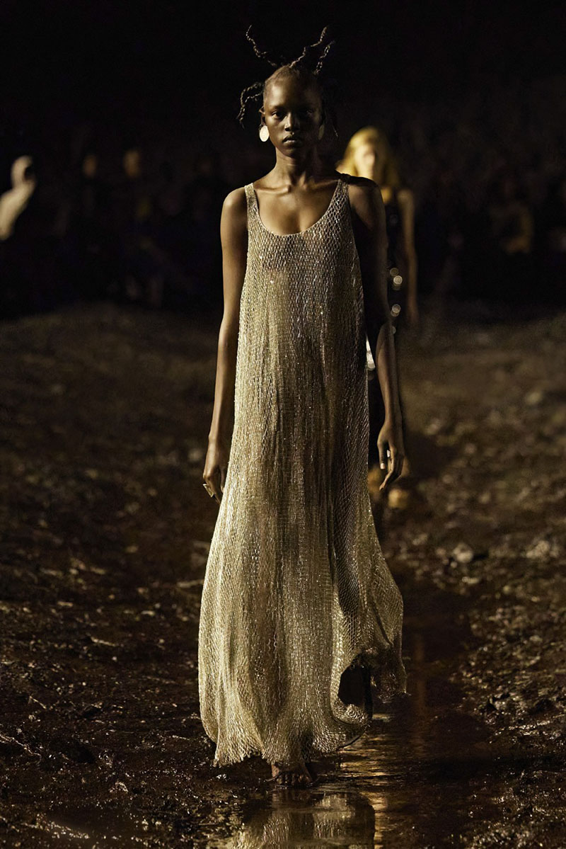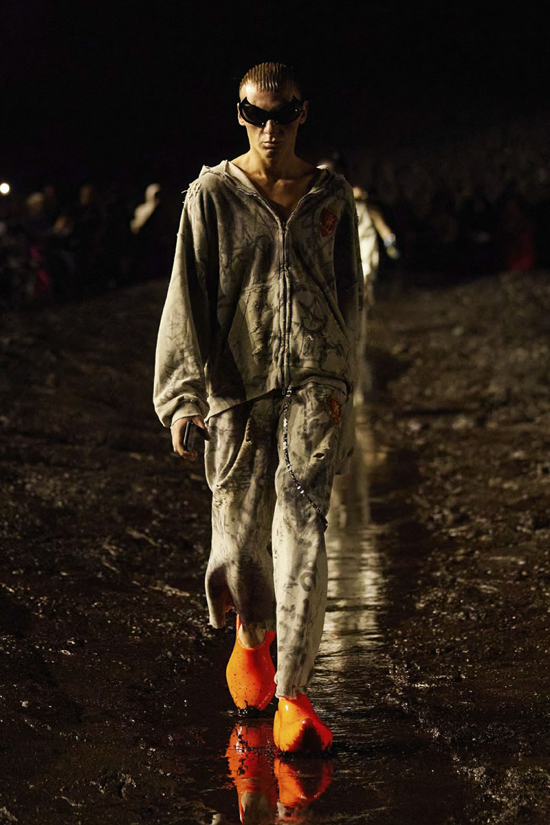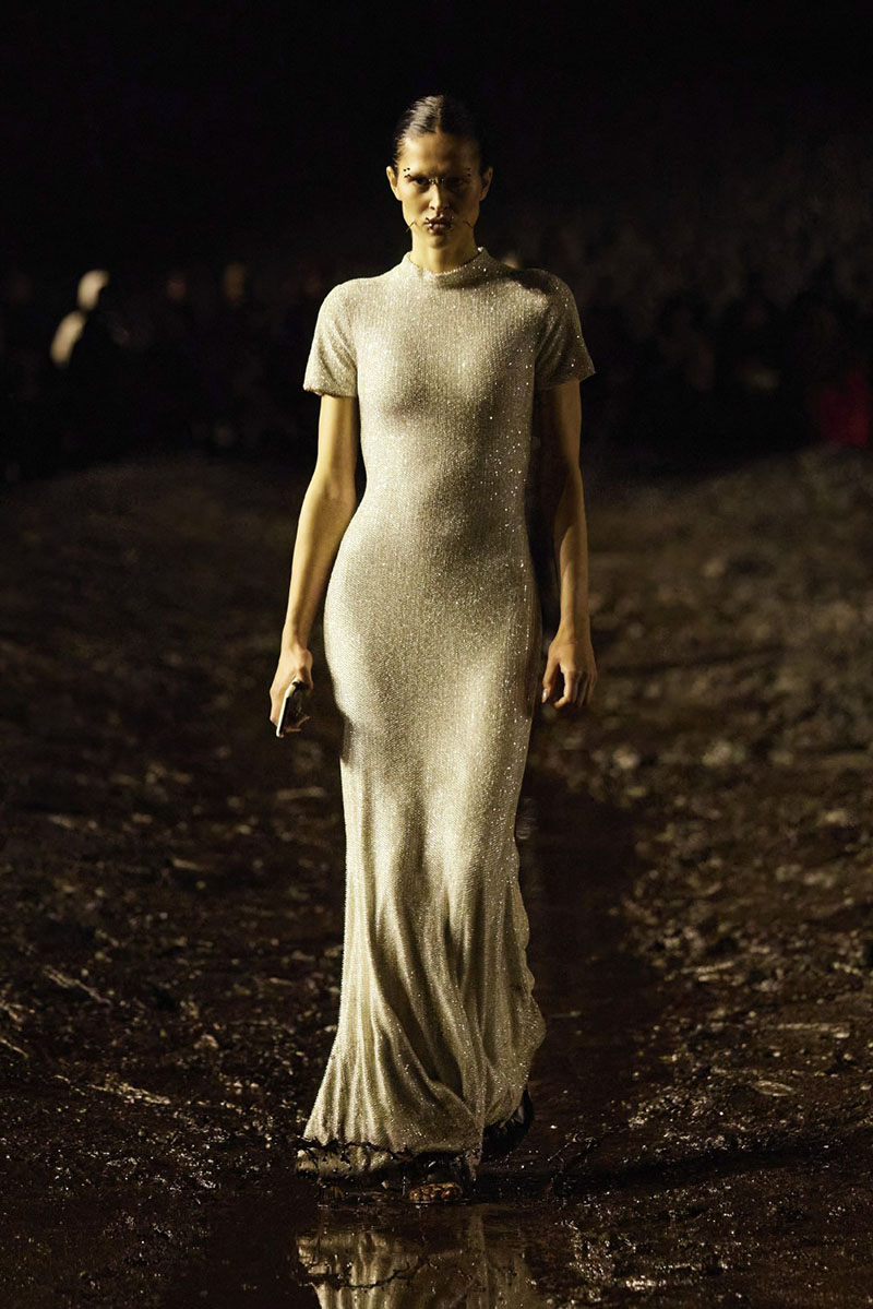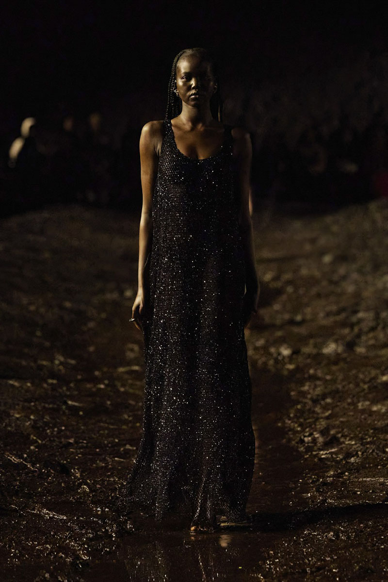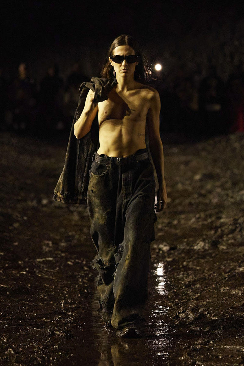 A partir de este, una amalgama de diferentes estilos recorrieron la pasarela chapoteando en el charco de barro que cubría todo el recorrido. Esto ha llegado a ser uno de los temas más comentados de la colección, por un lado ha habido mucha gente que alababa este detalle que casaba a la perfección con el concepto general, y por otro muchos detractores que lo tildaron de sacrilegio.