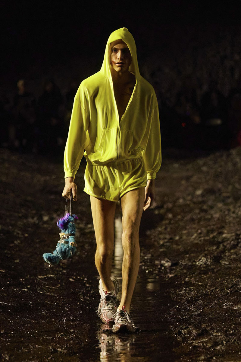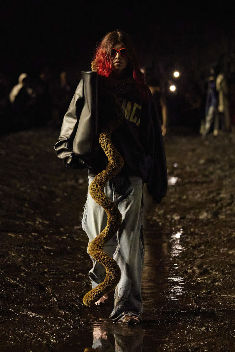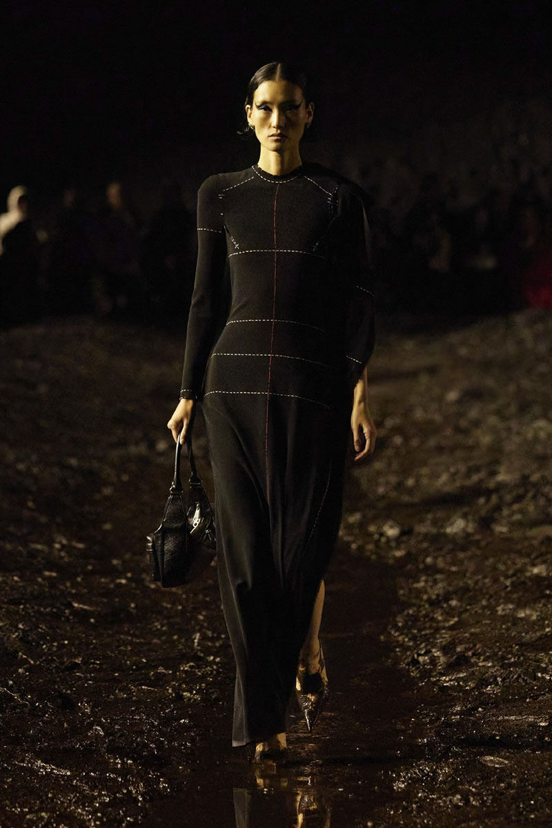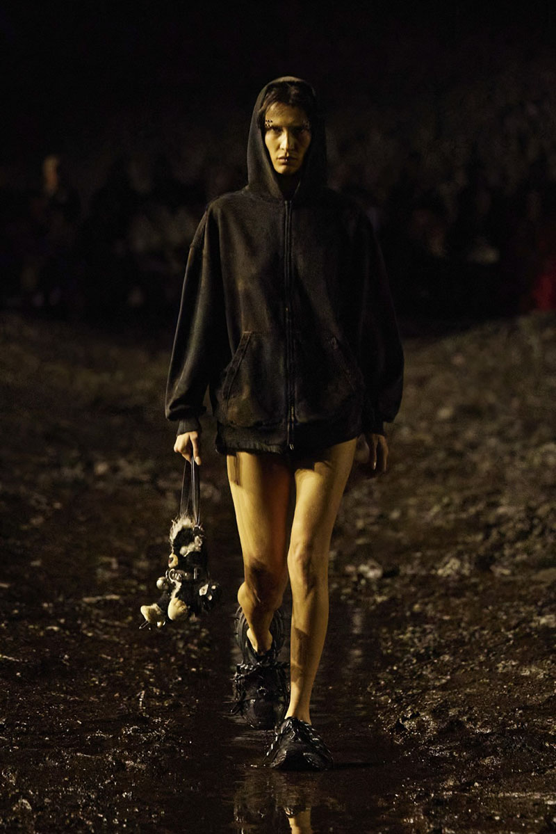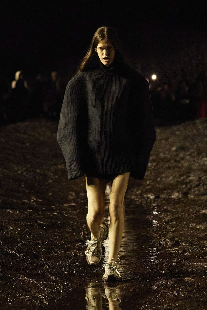 A partir de este, una amalgama de diferentes estilos recorrieron la pasarela chapoteando en el charco de barro que cubría todo el recorrido. Esto ha llegado a ser uno de los temas más comentados de la colección, por un lado ha habido mucha gente que alababa este detalle que casaba a la perfección con el concepto general, y por otro muchos detractores que lo tildaron de sacrilegio.