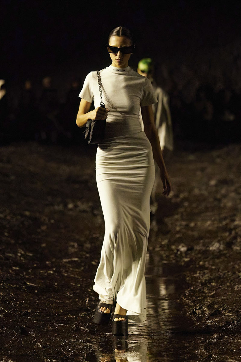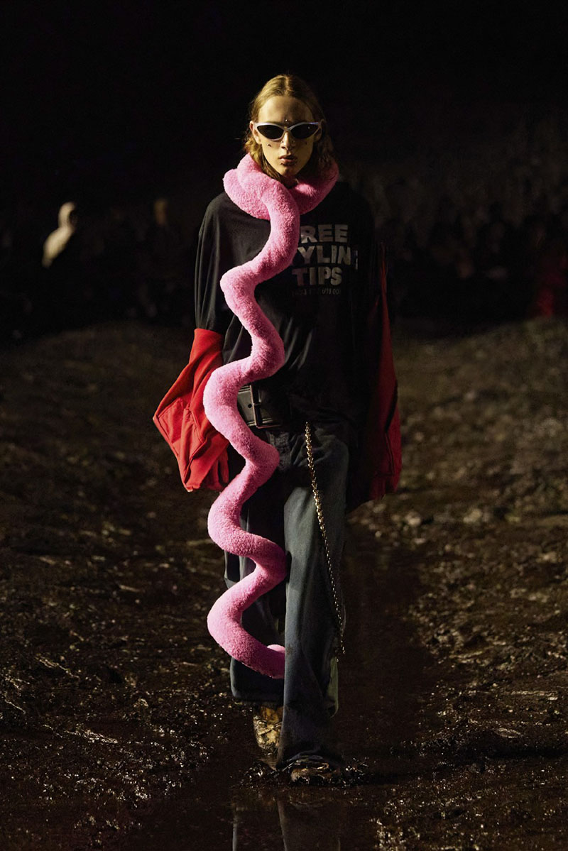 A lo largo de lo que parecía simular un campo posapocalíptico lleno de barro y escombros, el director creativo de una de las casas de moda más virales de nuestra era, Demna Gvasalia, presentó la nueva y esperadísima colección de Balenciaga Summer 23 dentro del calendario de Paris Fashion Week. El desfile y los nuevos diseños, como era de esperar, han causado furor entre todos los fanáticos de la marca.