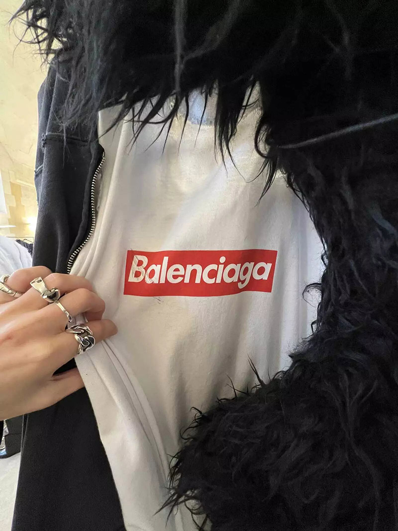 Y claro, Supreme siendo el pilar de la cultura que es, no pudo quedarse sin esta mención de Demna. Claro que, una camiseta de Balenciaga tenía que ser lo que es; por eso el corte y las proporciones son más exageradas y el vibe tiene ese aire irónico que caracteriza este tipo de piezas.