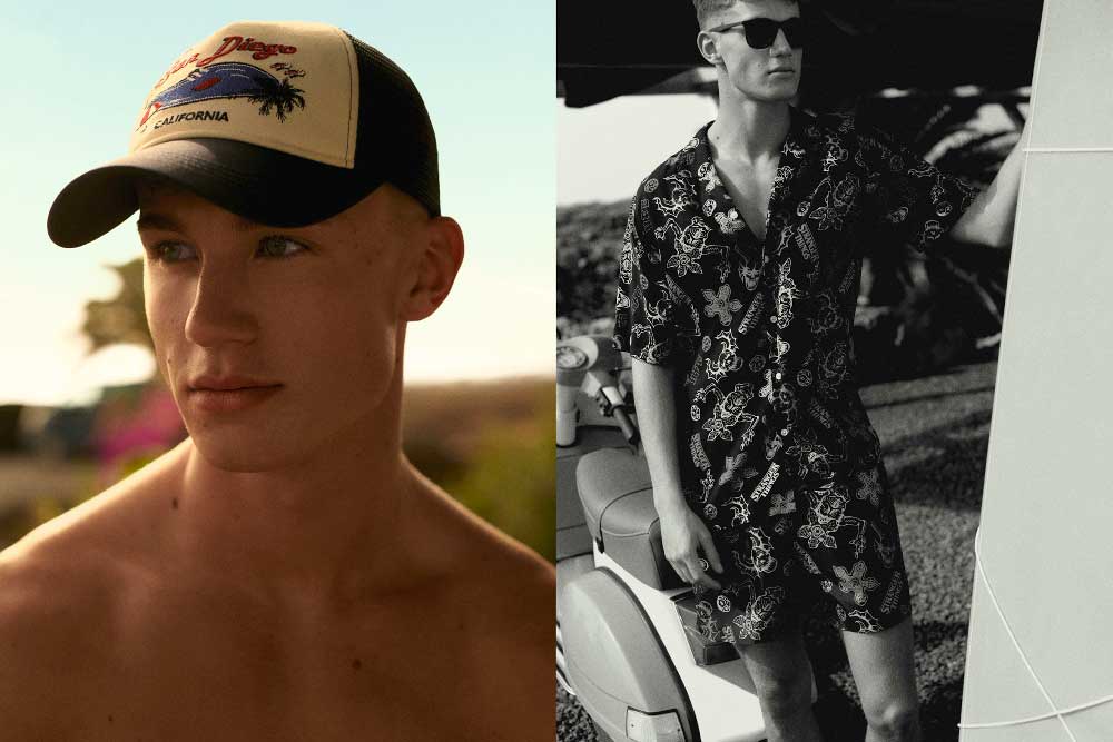 Aparte de la línea más amplia y clásica de bañadores masculinos en tonos neutros, lisos y a rayas, en Lefties también nos encontramos una propuesta mucho más surfera. Es la línea Tropical con estampados florales de estilo hawaiano. En ella encontramos bañadores súper chulos, pero también conjuntos de bañador con camisa a juego que tienen mucho rollo. Y eso aparte de las mil ideas de estilismo que puedes encontrar a lo largo y ancho de Lefties.