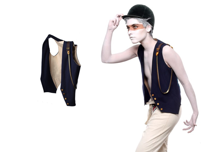 Geometry, Alabando al Busto Vol 2. Así se llama la próxima colección del parisino de 26 años Baptiste Viry. Básicamente una colección con aire pretérito de chalecos, collares y pulseras. Piezas basadas en iconos tradicionales del vestir y sentir masculino, algunas incluso con tono marcial, ahora aplicadas sobre el busto femenino. Desgraciadamente para los fans del chaleco, Baptiste no hace hombre por ahora (y por mucho que apoye la unisexualidad, uno no entra en talla). ¿A qué se nota el paso de este diseñador por la casa Hermès? (TAMYNQQMDTNTQ)