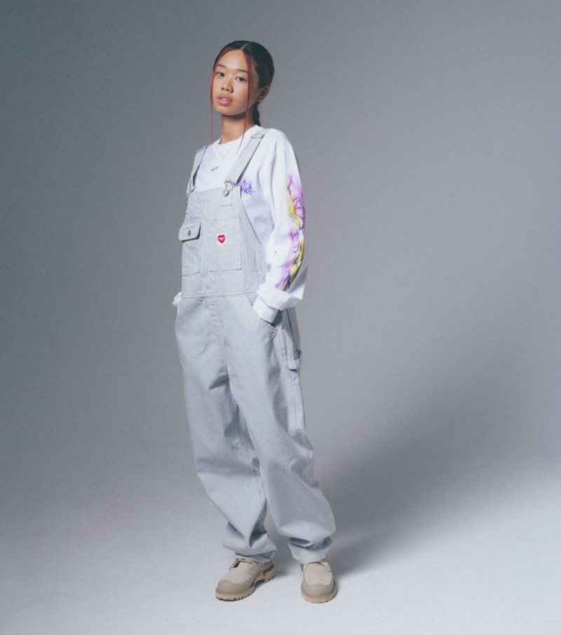 Para su colección de FW23 Carhartt WIP nos ofrece prendas superiores indispensables para el armario de un trabajador (o un moderno que le mola el rollo) como chaquetas de cuello camisero multibolsillo, petos utilitarios, sobrecamisas gruesas y mucho más en cambray, lona negra y la mítica raya Hickory. Además, también encontramos conjuntos de chaquetas utilitarias y pantalones anchos y hasta delantales… ¿puede ser este el nacimiento de la estética chef-core? Sumado a esto, tenemos prendas habituales como sudaderas y camisetas gráficas con el logo del corazón retro.