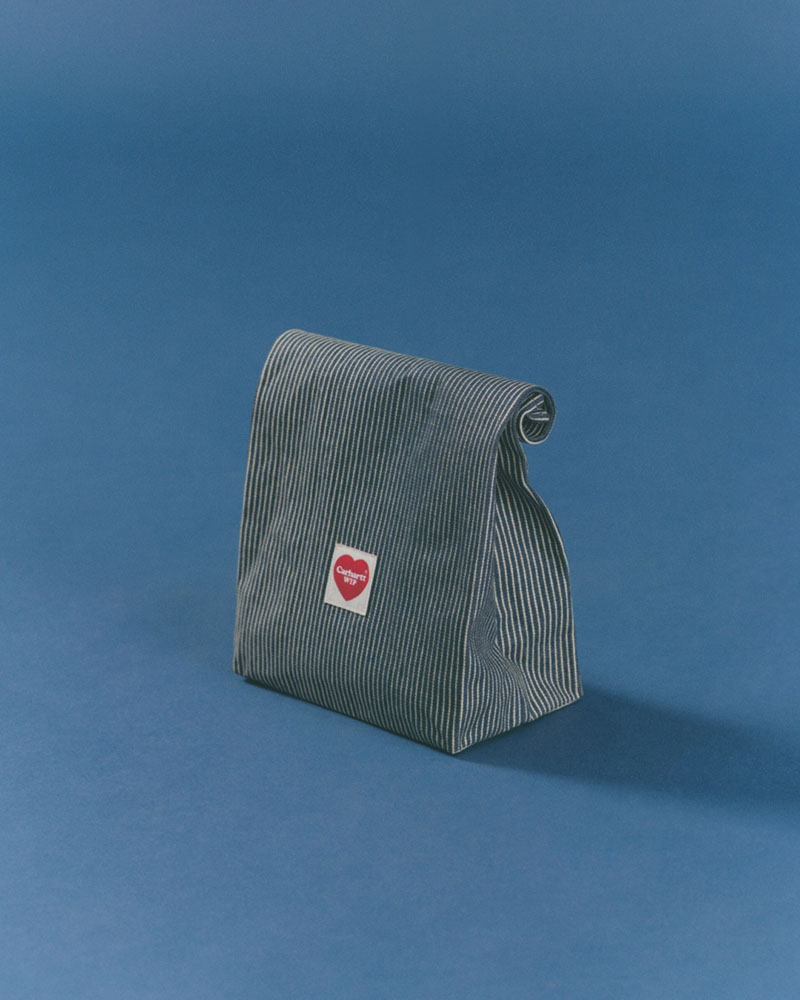 Como detalles especiales de Carhartt WIP FW23, en la misma línea de materiales que las prendas podemos encontrar una nueva versión de su fiambrera en forma de bolsa; ahora con la raya Hickory, felpudos en forma del logo de corazón y pequeños collares a juego.