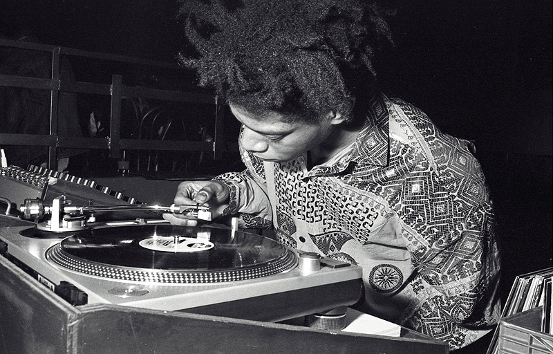 Jean-Michel Basquiat mixant au Area Club, 1984 © Ben Buchanan.