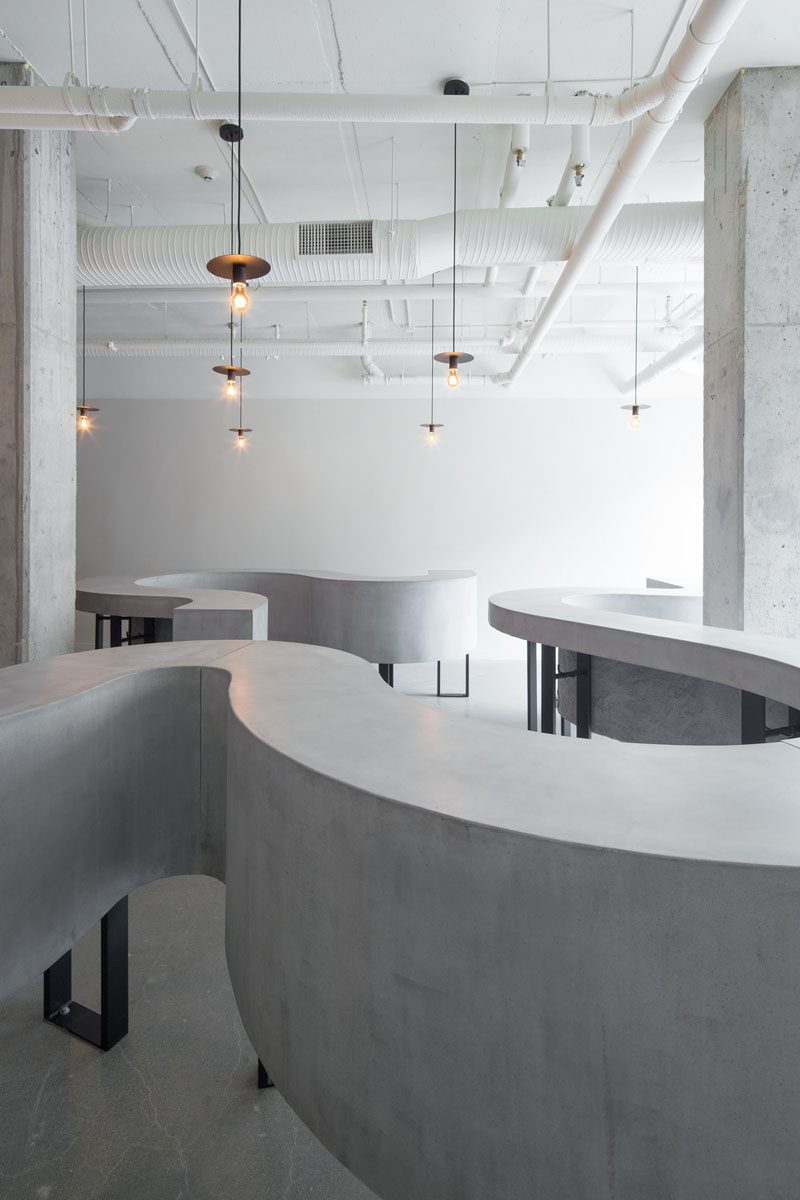 Shuck Shuck es el nombre del restaurante ubicado en East Pender Street, Vancouver, y en el que el estudio de arquitectura e interiorismo Batay-Csorba Architects ha creado esta intervención sinuosa de hormigón.