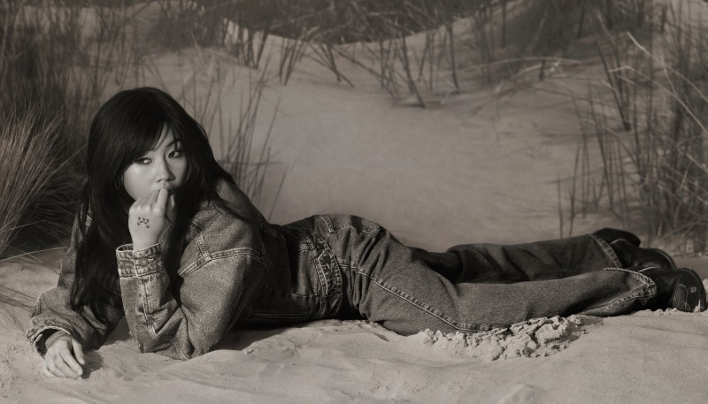 La cantante Beabadoobee con look de Guess Jeans ultra clásico y atemporal.