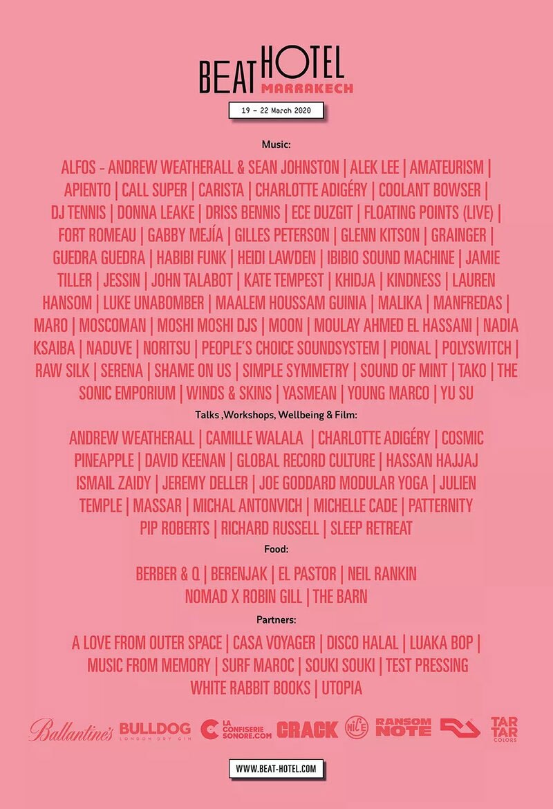 Beat Hotel Festival posiciona Marrakech como uno de los destinos turísticos para los amantes de la música contemporánes, del 19 al 22 de marzo de 2020.