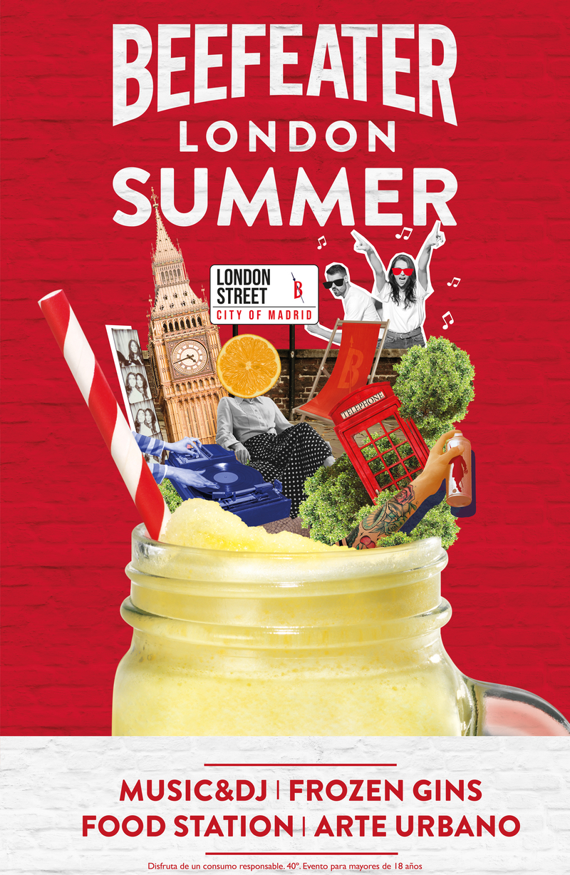 ¿Y qué tiene que ver todo esto con la ciudad del Big Ben, el Támesis y el Museo Madame Tussauds? Pues mucho, en efecto. Resulta que el Beefeater London Street no solo nos deleitará con los mejores combinados de la firma de ginebra más laureada del mundo, sino que incluso replicará una típica calle británica, creando una sofisticada atmósfera, perfecta antes de volver a la rutina. De esta forma, en la azotea habrá un fotomatón inglés, una cabina DJ, sesiones de música en directo, un Food Station… Además, estará presente el grafitero Dase, que, mediante su creatividad, mostrará su arte urbano en vivo.