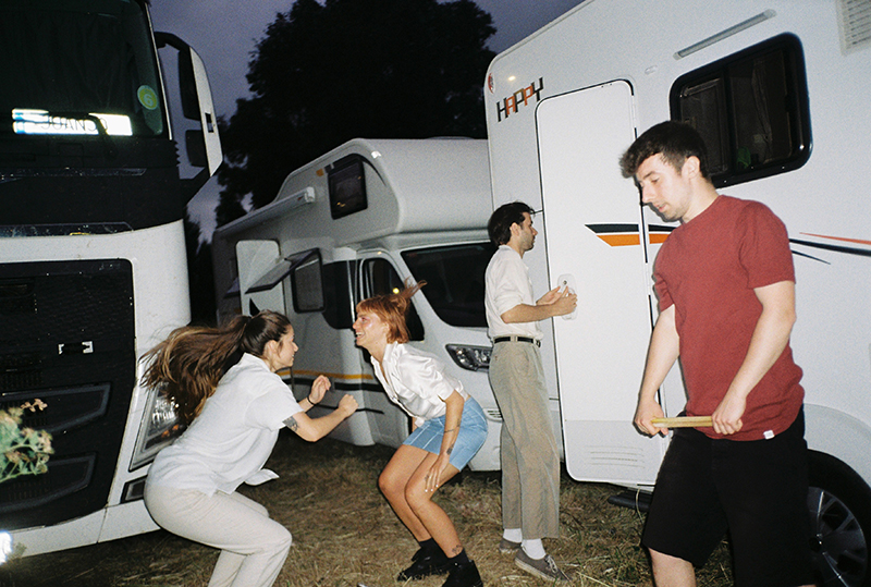 Belako está formado por los hermanos Josu Ximun Billelabeitia (guitarra y voz) y Lore Nekane Billelabeitia (bajo y voz), más Lander Zalakain (batería y voz) y Cris Lizarraga (teclado y voz) forman Belako y acaban de publicar su cuarto disco, Plastic Drama. Un álbum que ya han presentado en Barcelona y Bilbao. También lo harán en Madrid el próximo 18 de septiembre. Además, antes de la presentación oficial del disco estos días, fueron la primera banda en dar un concierto en un auto-cine, fue en Getxo (Bizkaia) el pasado 27 de junio, y se lanzaron al vacío. Fruto de ese directo, la fotógrafa Helena Goñi hizo fotografías en exclusiva para inmortalizar este día.