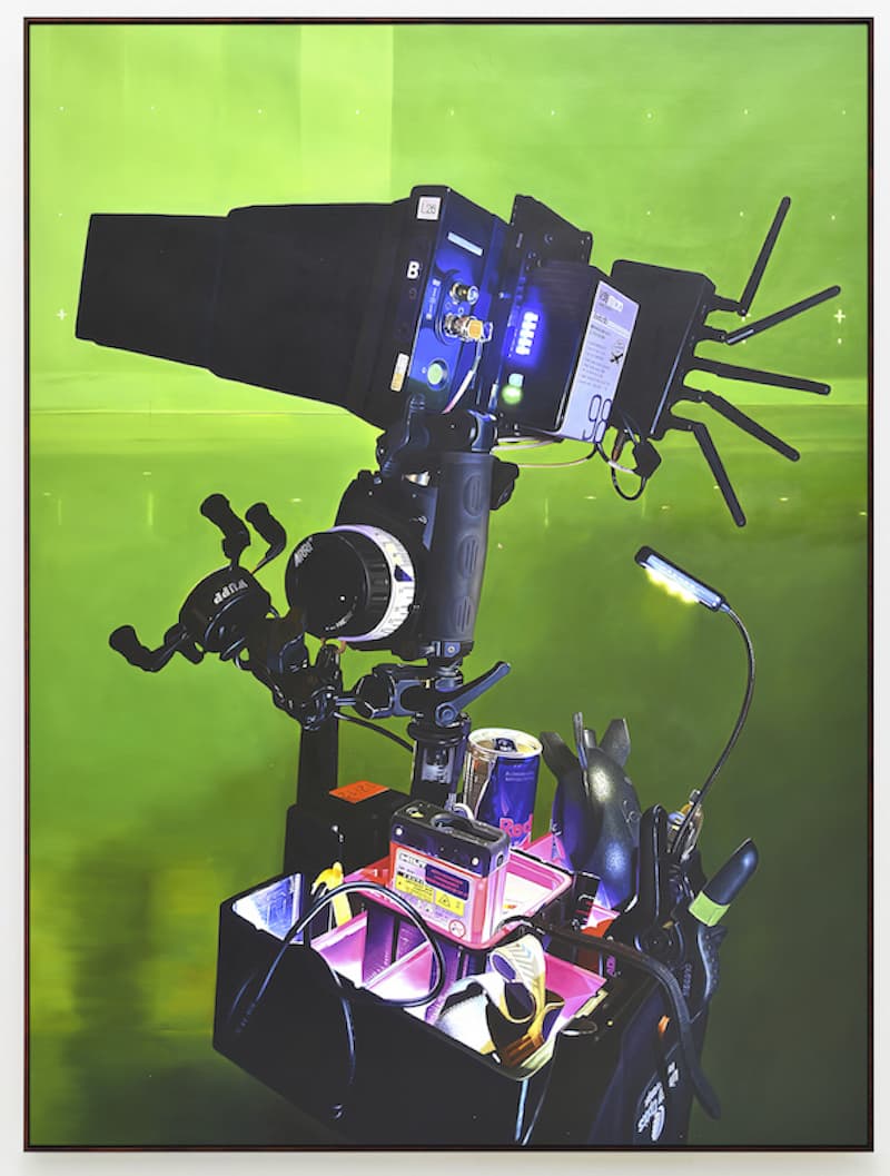 En Wentrup, Britta Thie (1987) nos transporta a un plató de cine, repleto de aparejos, cámaras, focos, trípodes y todo tipo de material cinematográfico. Traducción pictórica del entre bastidores de las producciones de cine y TV y la infraestructura de la industria del entretenimiento.