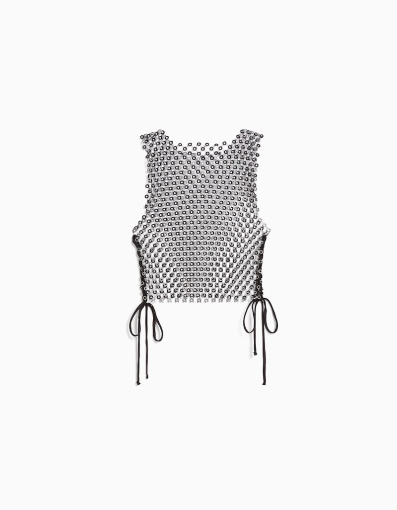 No tenemos ninguna duda que Bershka tiene claro que vamos a pasar calor este verano, y por eso diseñó esta camiseta. Sin mangas y formada por una rejilla metálica, es perfecta para dar un toque atrevido a cualquier conjunto. Tanto con unas bermudas vaqueras, o una falda midi, esta camiseta es un básico para esas noches que quieres arrasar.