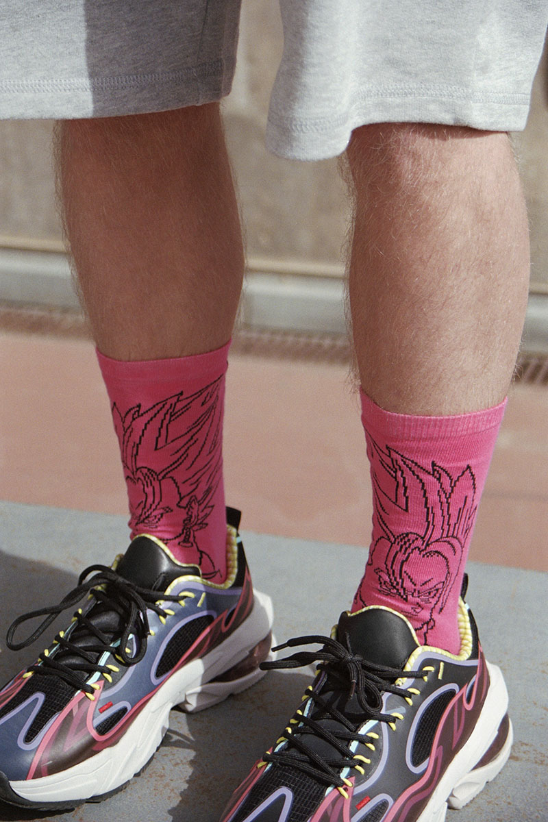 En esta colección de Bershka x Dragon Ball Z también hay un hueco para los accesorios. Los más fanáticos podrán construir su total look con el juego de tres pares de calcetines altos también en colores flúor estampados con los logos y personajes de la saga y con la funda para Airpods con estampado tie-dye en color amarillo flúor con la que podrás incluir el universo Dragon Ball Z hasta en tu música.