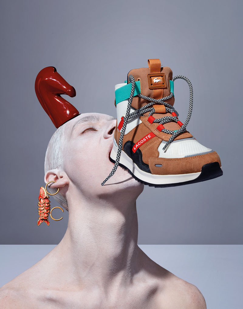 Arriba: Pisapapeles Samarcande de madera lavada Hermès + Doble anillo Dior Tribales + Zapatilla Run Breaker Lacoste