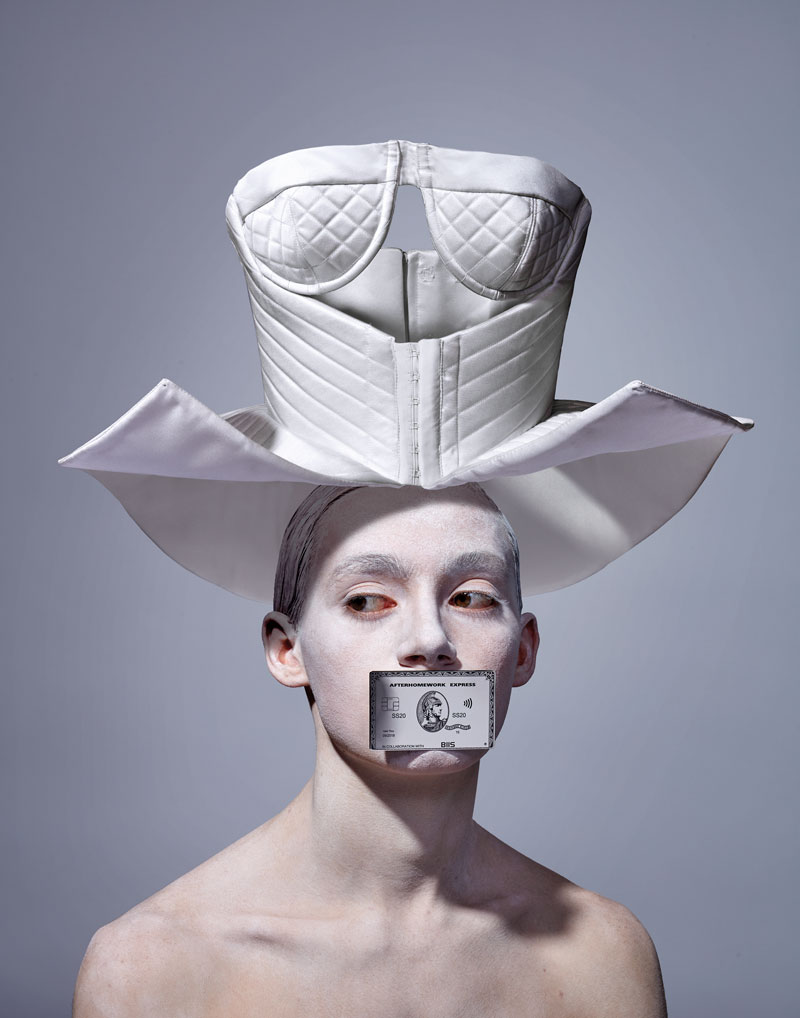 Arriba: Corset acolchado de seda Andrés Sardá + Broche pin american express Biis