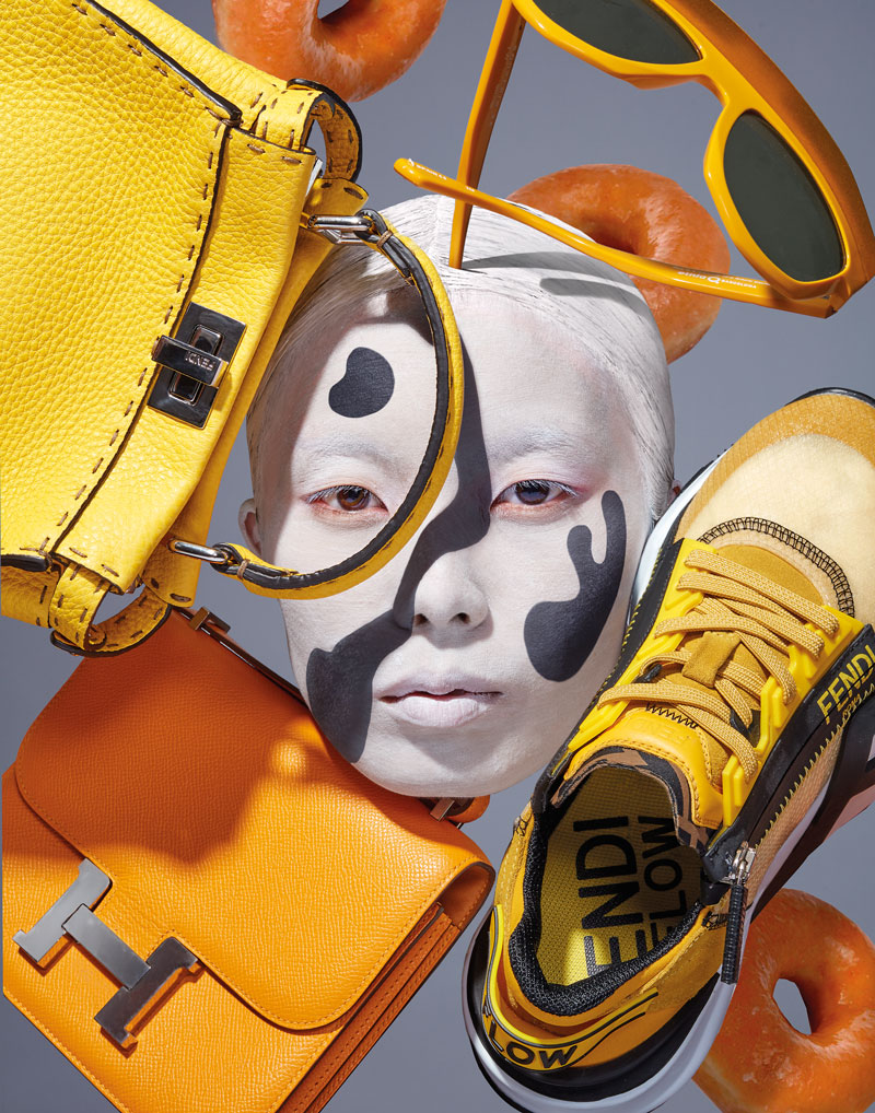Arriba (de izda. a dcha., y de arriba a abajo): Bolso Peekaboo Iconic Fendi + Gafas Etnia Barcelona + Bolso Constance mini Hermès + Zapatilla Fendi