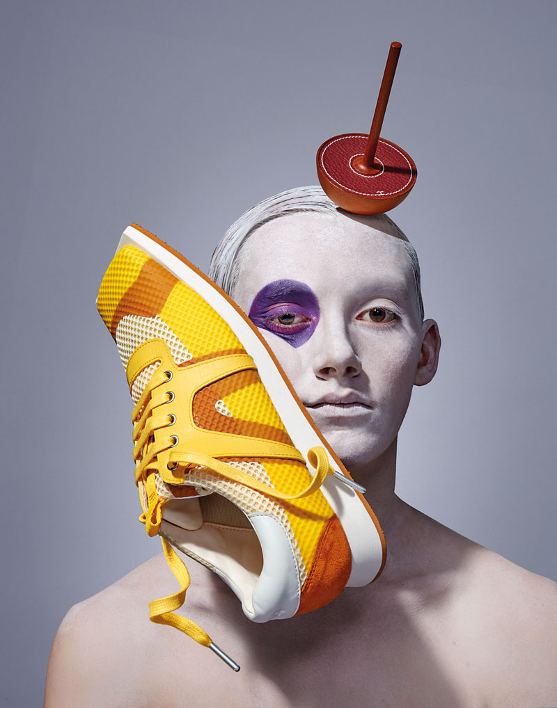 Arriba: Sneakers Simon de punta cuadrada Camper Lab + Peonza toopy de cuero y madera Hermès